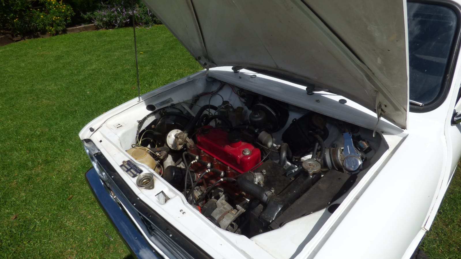 Mini clubman GTE with GTS head, 1982, no rust, BRG Roof and white Body.