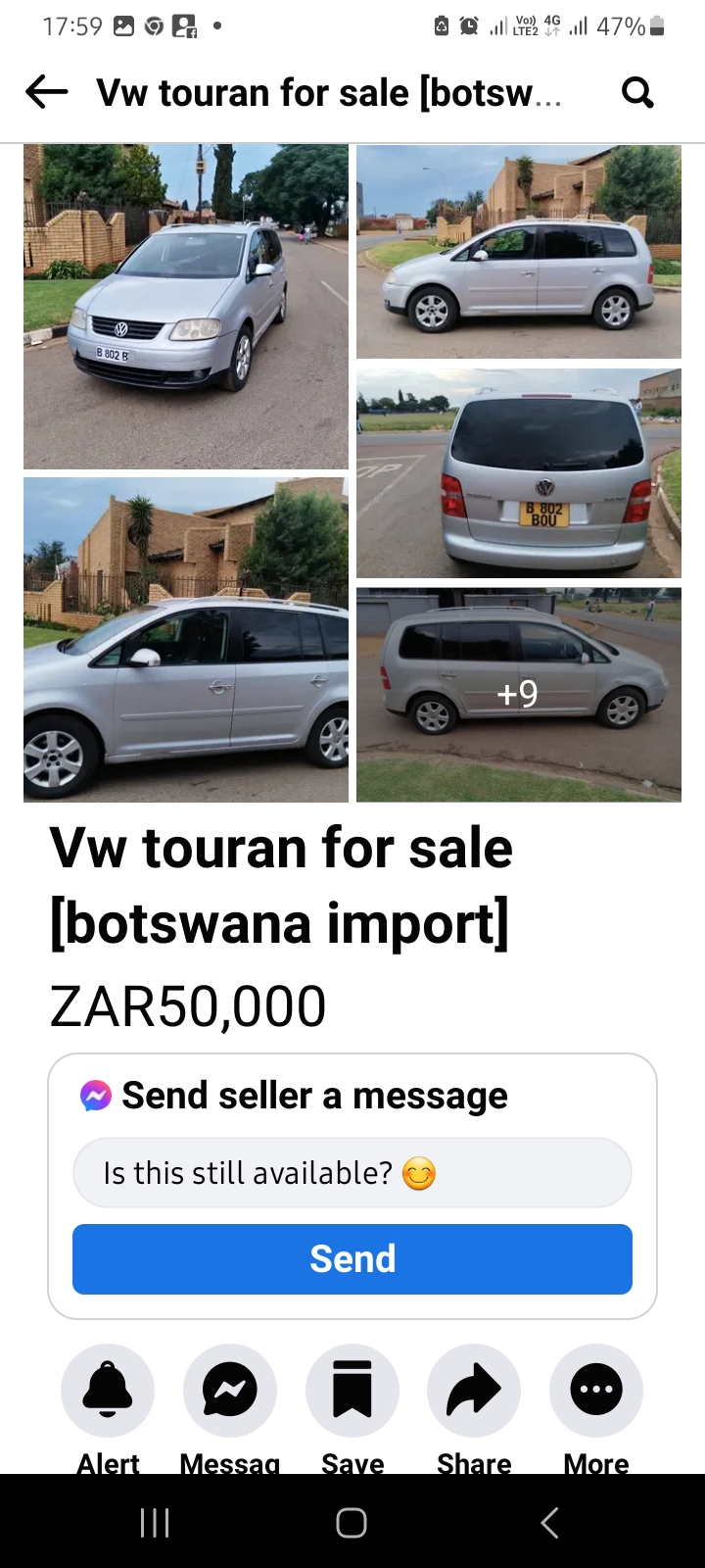 1.4 TSi AUTO DSG PADELSHIFT in super good running condition..very spacious and luxurious 7 seater interior..vehicle is mechanically good & no issues on suspension.. brakes need to be changed soon and front screen cracked..50k cash..must be sold to Foreigners only..whatsapp 074 2713 123view more