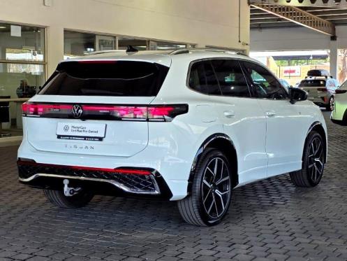 This 2025 VW Tiguan 1.4 TSI R-Line is a premium SUV that perfectly combines sporty design with cutting-edge technology. With only 3,600 km on the clock and priced at R889,995, it represents excellent value for a nearly new vehicle. The R-Line package adds distinctive styling with unique bumpers, badging, and 19-inch alloy wheels, while the interior boasts leather upholstery with R-Line stitching, a digital cockpit, and the Discover Media infotainment system with App-Connect (Apple CarPlay and Android Auto). Under the hood, a 1.4 TSI turbocharged engine paired with a smooth 7-speed DSG transmission delivers both responsive performance and fuel efficiency. Additional features include a panoramic sunroof, adaptive cruise control, park distance control with rear-view camera, keyless entry with push-button start, LED headlights, and an electric tailgate with Easy Open function. This low-mileage 2025 Tiguan offers a sleek, feature-rich driving experience — visit VW Wonderboom today to arrange a test drive or learn more.
