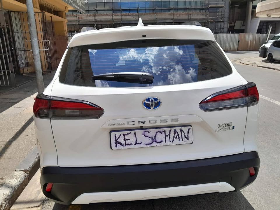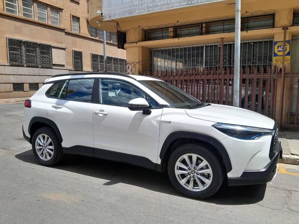 For sale: 2024 Toyota Corolla Cross 1.8 Hybrid with 7000 km, automatic transmission, spare key, reverse camera, sensors, and leather interior.