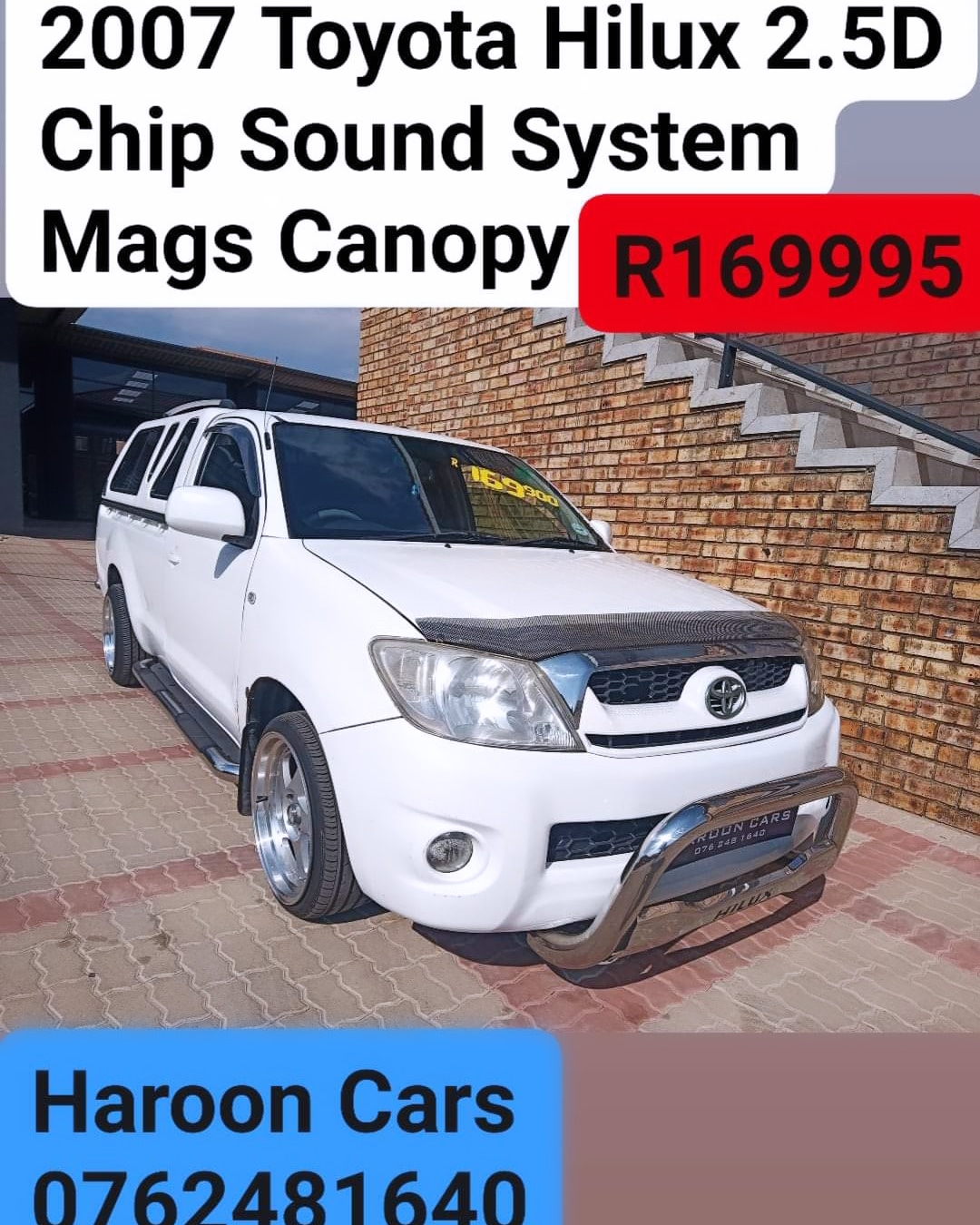 Toyota Hilux 2.5D Chip Sound System Mags Canopy Bullbar mint Call Haroon or WhatsApp on 0762481640view more Based in Lenasia JHB South 21 Camelia avenue Haroon Cars