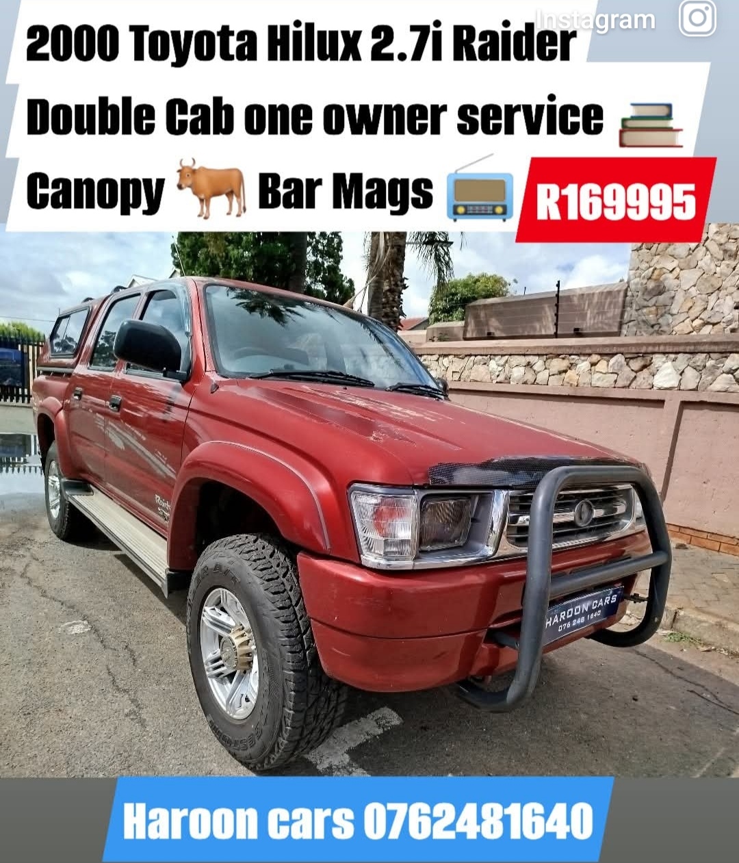 Toyota Hilux 2.7i Raider Double Cab canopy one owner service history Spare keys Call Haroon or WhatsApp on 0762481640view more Based in lenasia Jhb south wide range of vehicles available