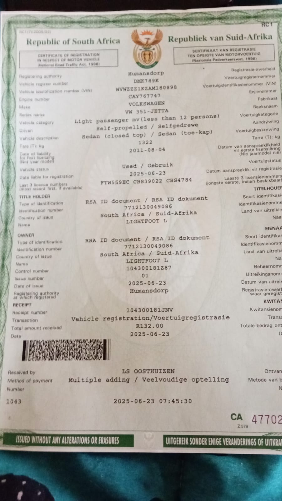 All advert data including images, descriptions, and pricing on Junk Mail is supplied by our advertising partners. All vehicles labelled "voetstoots" are sold as is, including imperfections and damages in or on the vehicle at the date of purchase. Junk Mail Publishing Pty Ltd is not involved in the brokering of the deal between the advertiser and buyer, thus exempting itself from responsibility for any errors that may occur. It remains the sole responsibility of the advertiser.