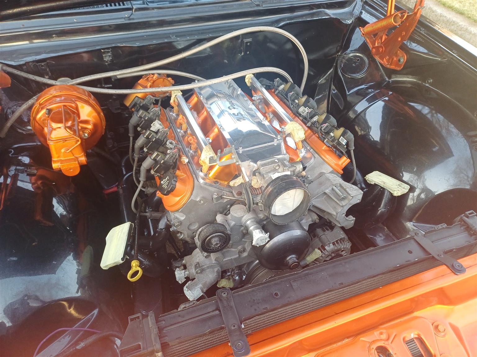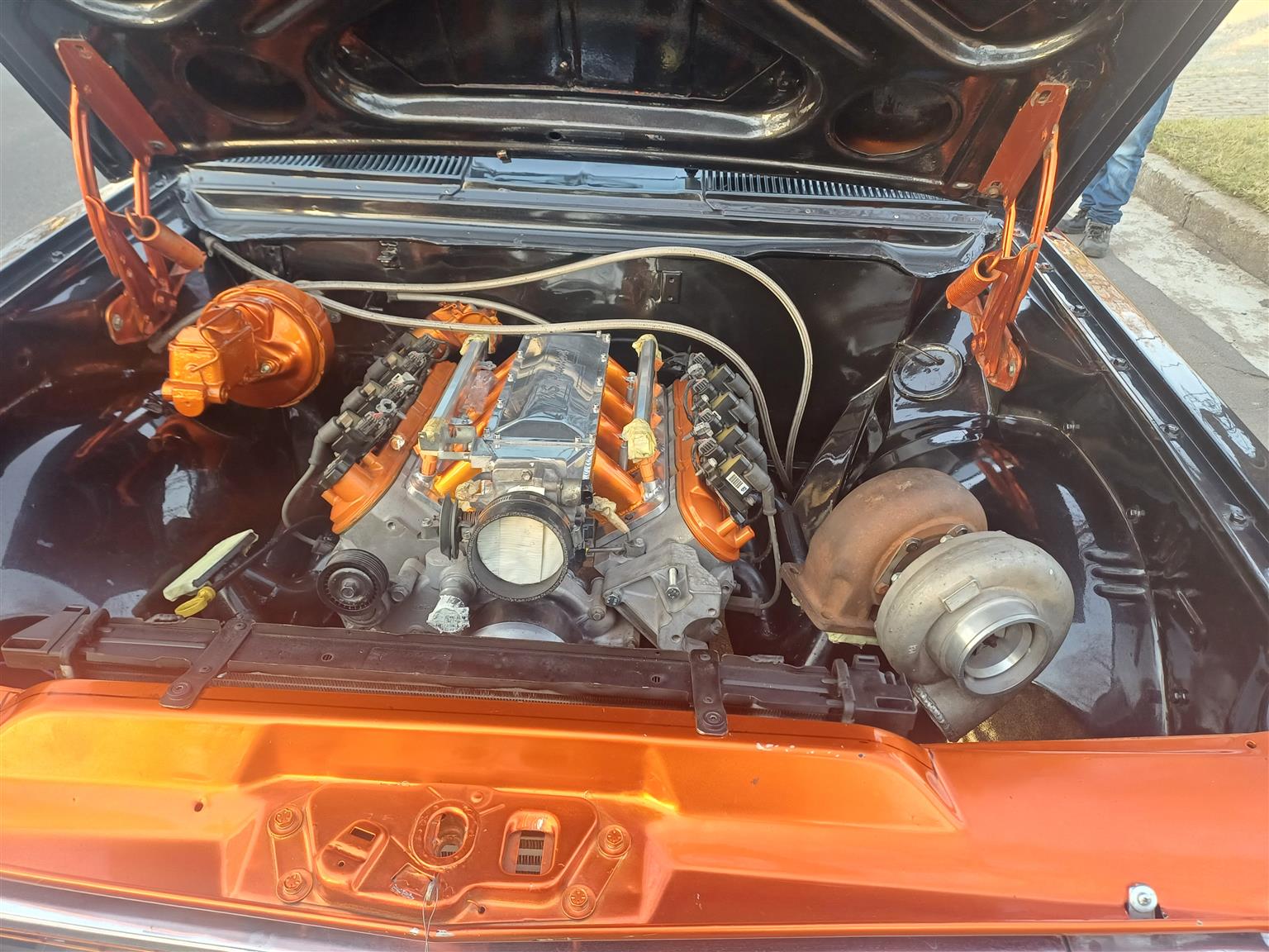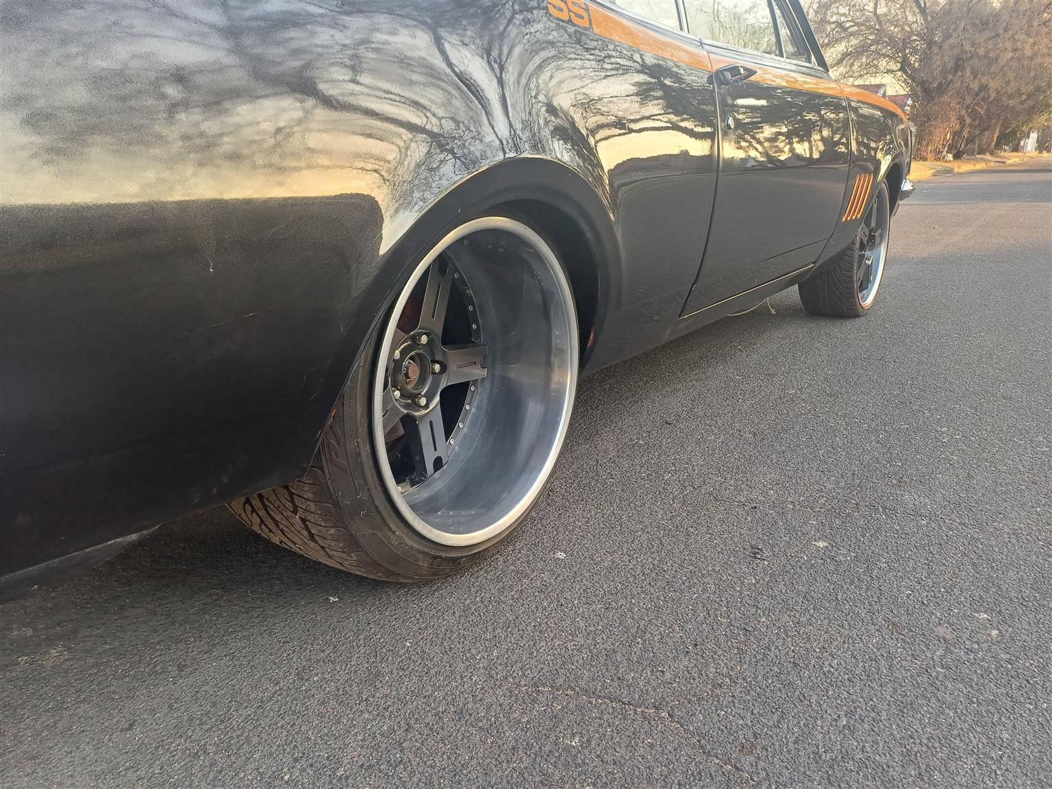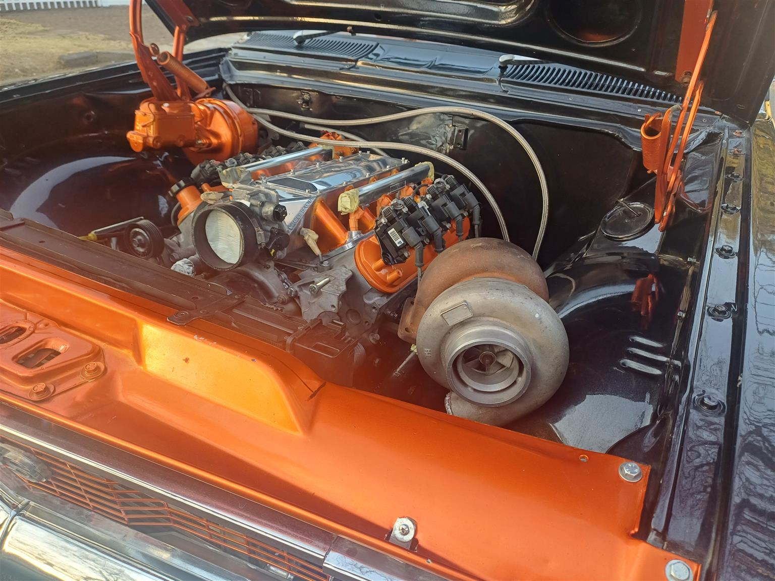 1973 CHEVY SS LS V8 6.0L single/ twin turbo setup both options are available 350 chevy turbo gearbox performance torque converter big performance 8 port brakes shortened Gavin Wilkins 9inch 33 spline limited slip diff with custom 2 piece shafts tubed rear custom wide rear 20inch wheels upgraded suspension custom paint job which needs a decent polish of standing interior complete with genuine black leather new carpets....