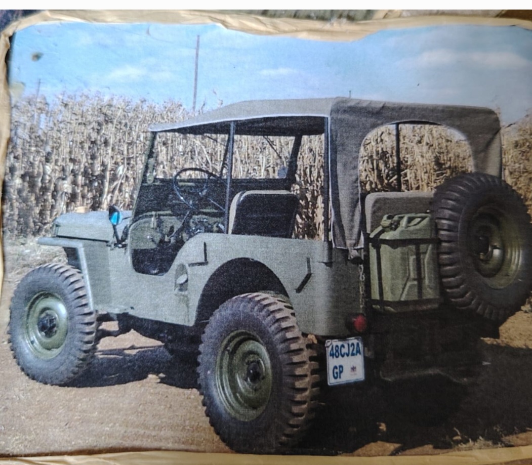 Two beauties CJ2A 1948 jeep,olive drab restored to as close to original as possible. Grey willys CJ2A jeep is 1947.