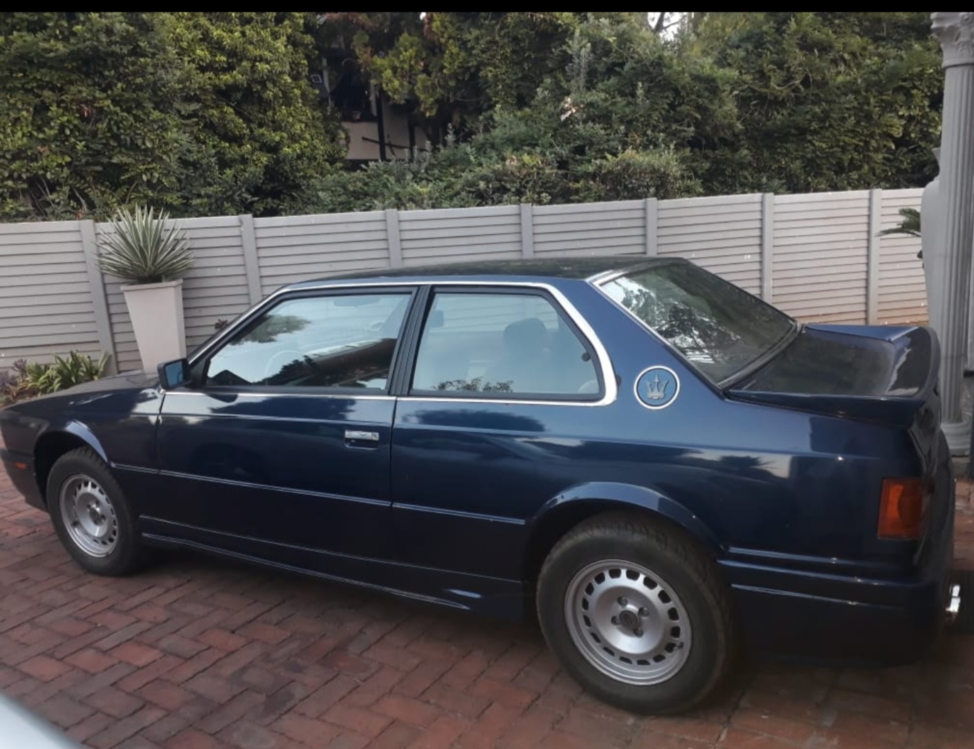 Maserati Biturbo 1987 made in Modena Italy. Engine size 3.0ltr V6 twin turbo. Manual racing gear box. Fuel injection. Double exhaust with four pipes. Mileage 94.435 kilometers. Second fastest car in it's time.