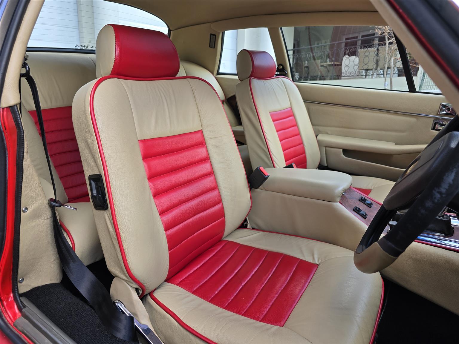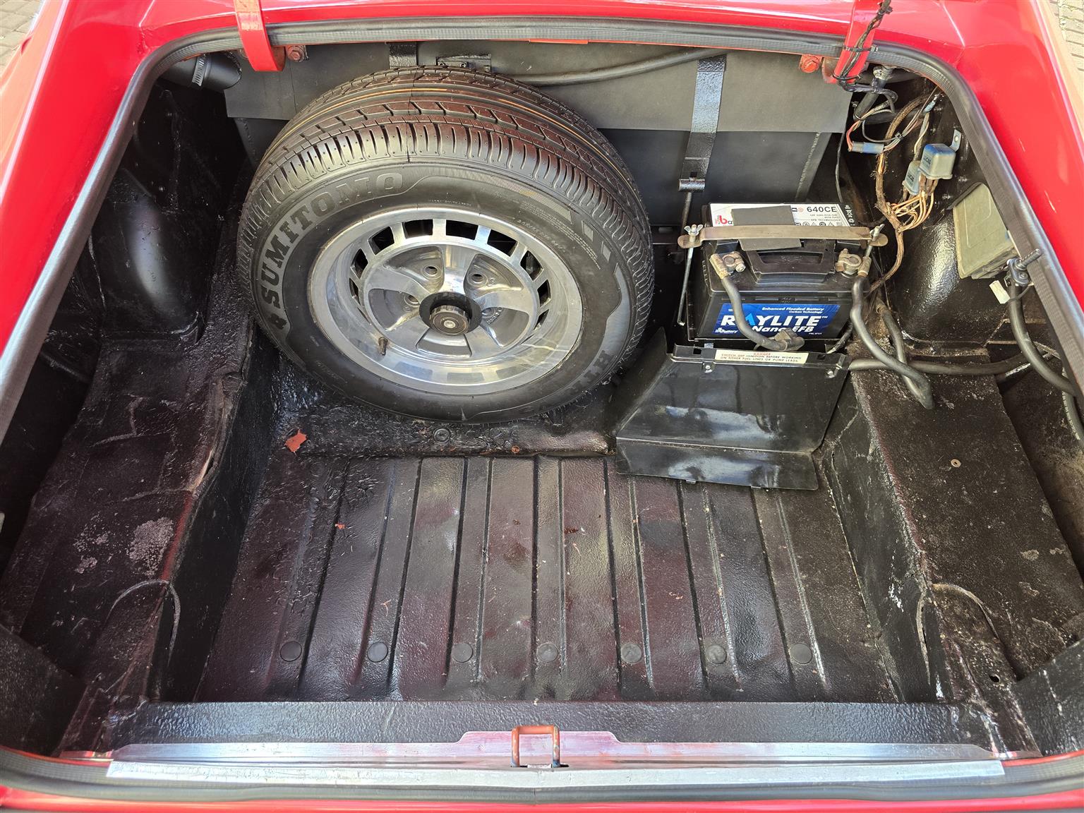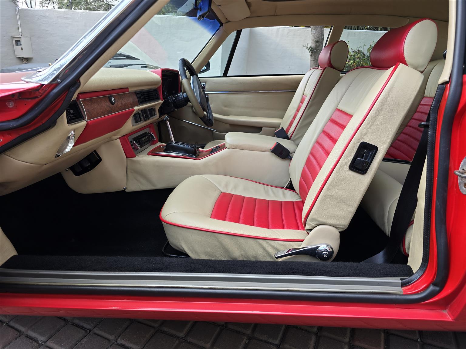 Her interior has been redone with dark carpeting and cream and red seats to complement her red exterior. Her rear church window was proven to aid the stability and structural integrity. With her broad low hood and oval headlights, she was set up to cheat more wind than any E-Type. She also has a Jaguar sunroof as an extra. Her paintwork presents well. Her sills line up nicely and her boot is straight. She is also fitted with a brand new 75L fuel tank. This stunning lady in red sits on her original rims which have also become quite sought after in their own capacity.