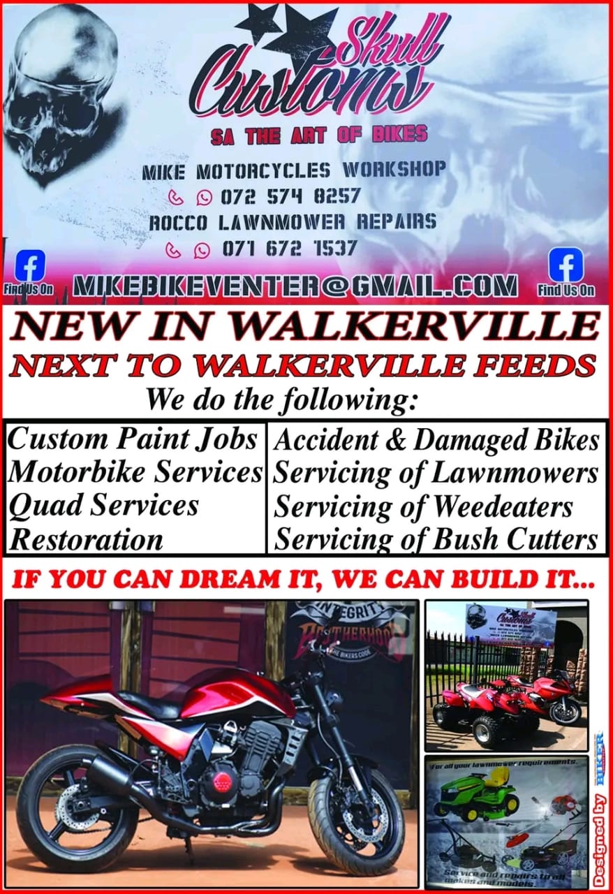 If you are in need / looking to get absolutely phenomenal repair workmanship of any kind done on your motorbike, quad bike, off-road bike, or are perhaps just interested in getting a unique one-of-a-kind custom paint job done that will for sure have heads turning, then look no further!!! We also do repairs /services to lawnmowers and bushcutters. Call us now to get a reasonable & no obligation free quote on any kind of job you need done.