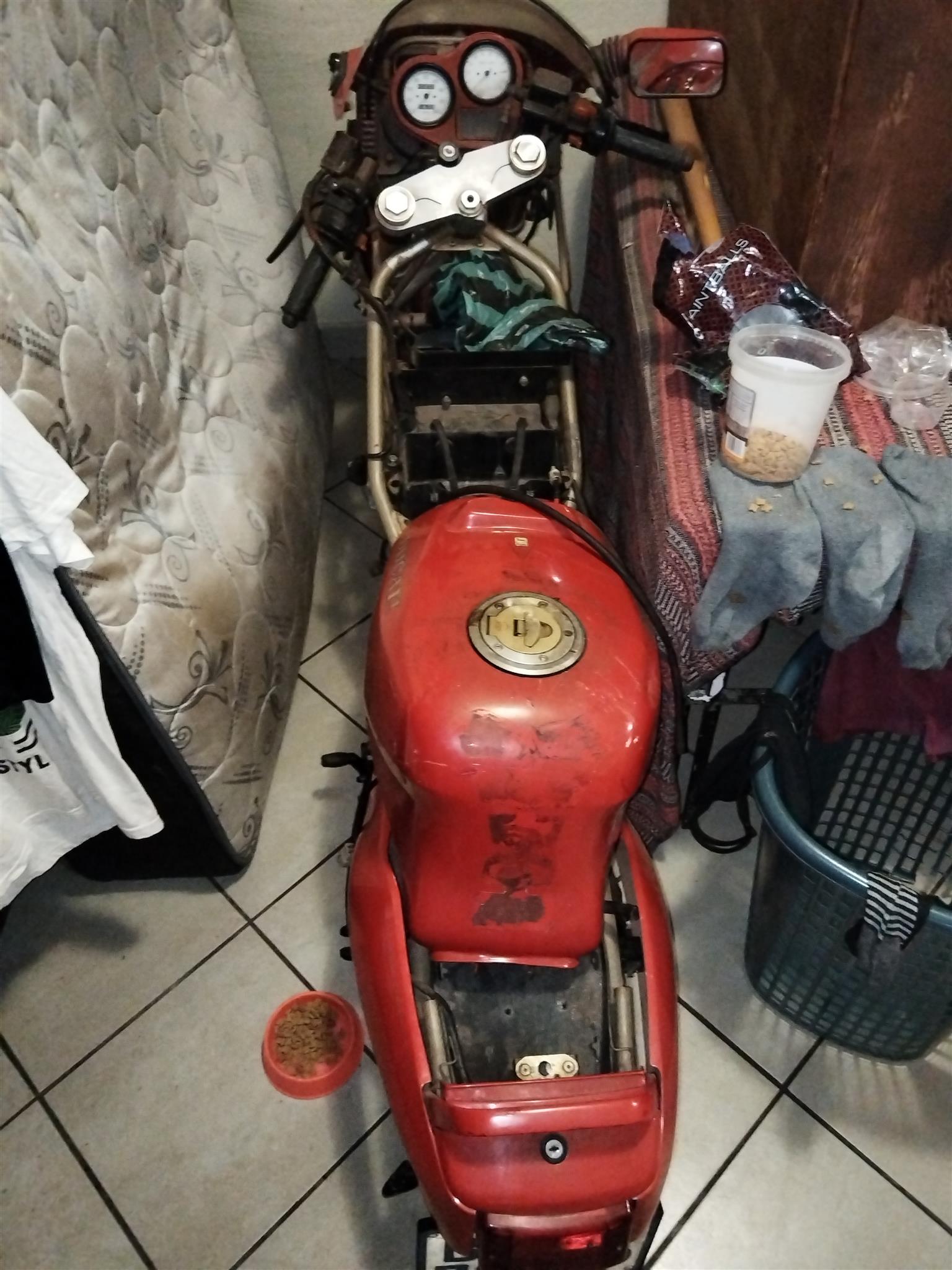 bike needs to be put together but paperwork is in order for more information and photos contact me on 0817921468view more i don't have time to work on the bike anymore but no previous accidents and paint work is good condition along with the wiring just need battery and a few minor tlc but tires stil perfect about 85% left
