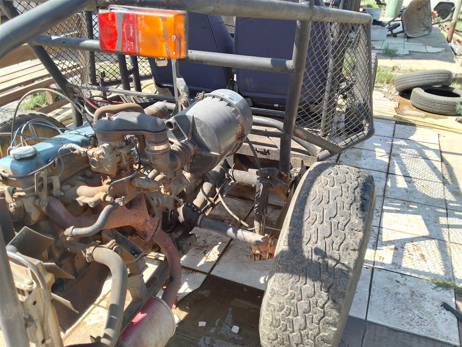 1400 engine pipe car. Two seater. Beetle 4 speed gear box with reverse. Is driving. Fun toy for father's and son's