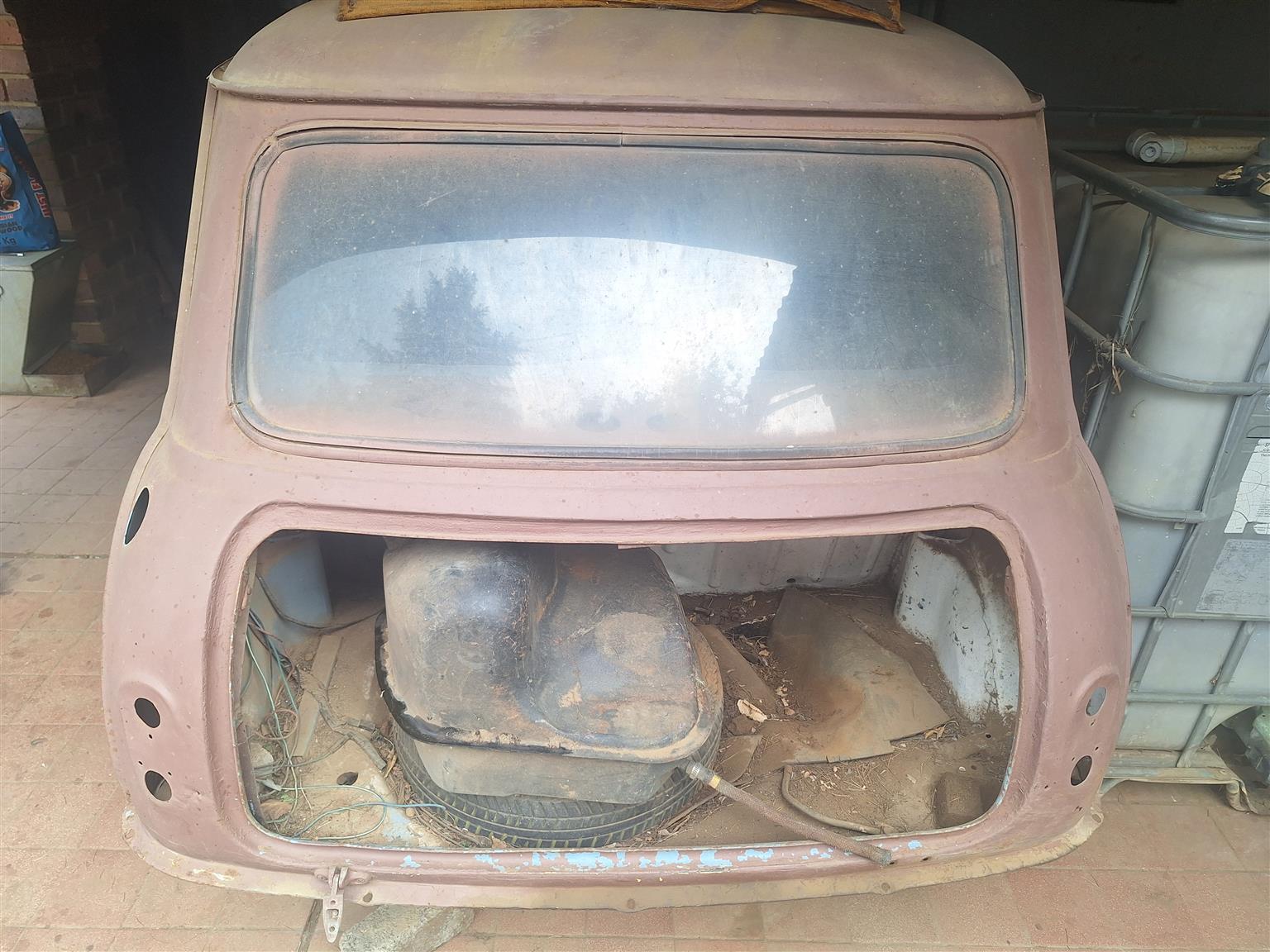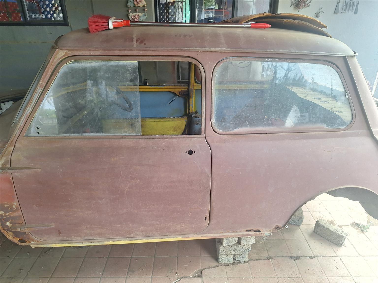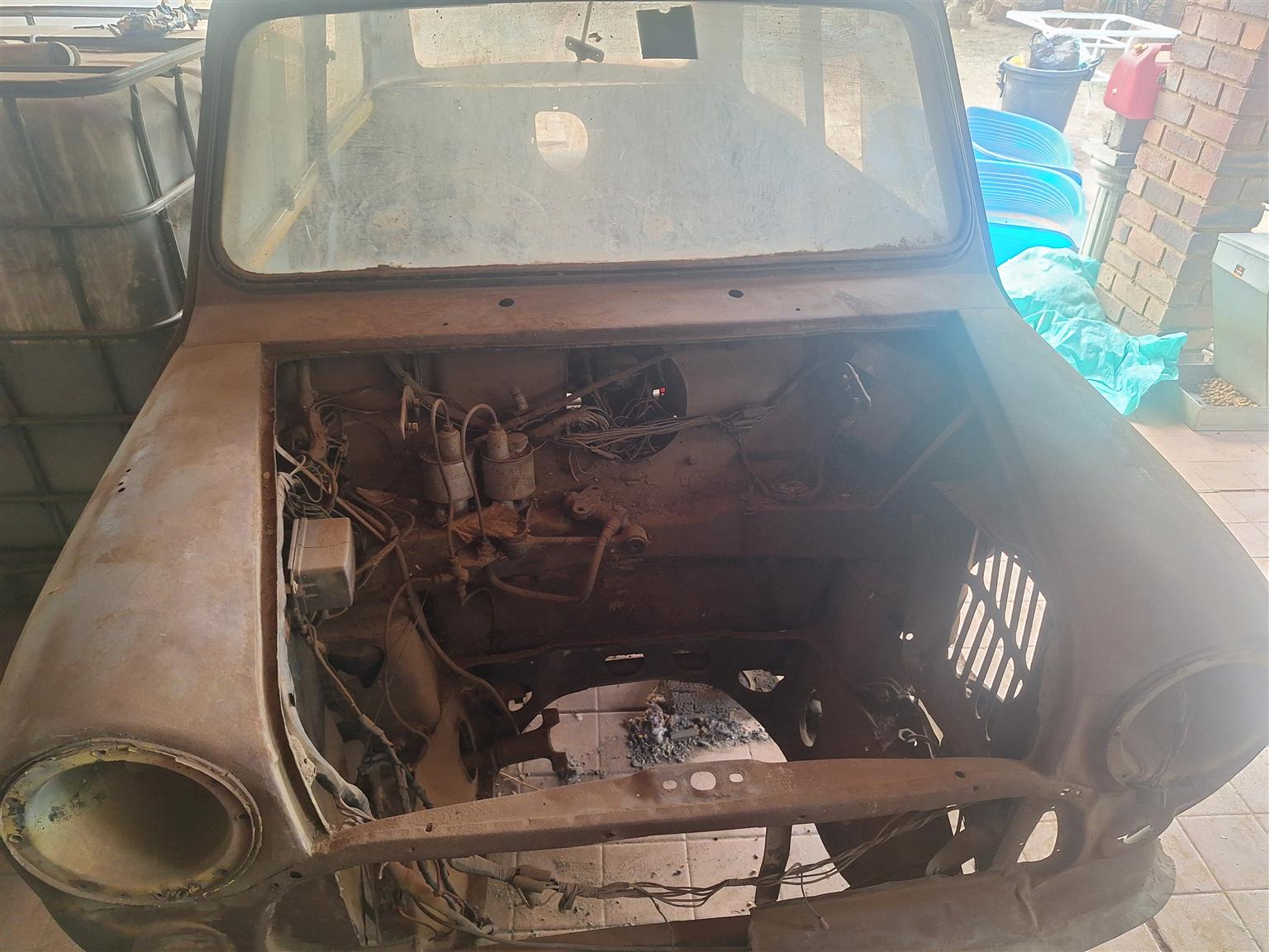 Austin mini, for rebuild, completely stripped, has engine, gearbox, rims. NO PAPERS
