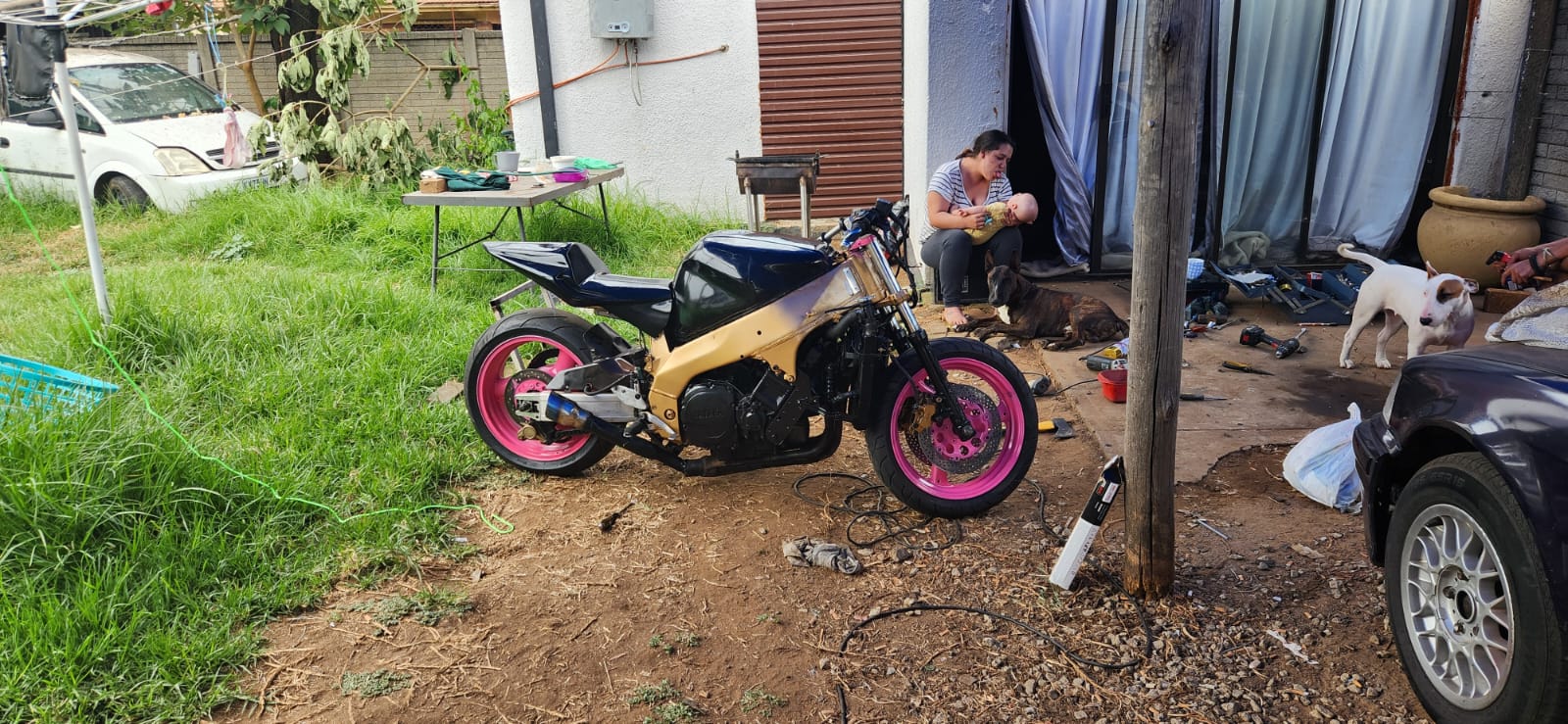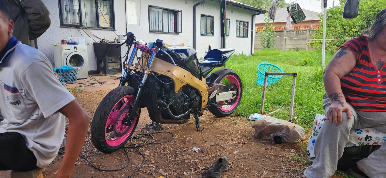 1 kawasaki zx7r and 1 yamaha 750 streetfighter/trickbike both has papers needs some tlc both starts and drives want to sell for 45000 or swop for 1000cc bike no cars please and no time wasters.