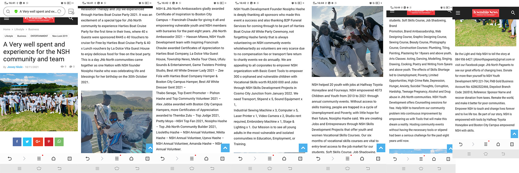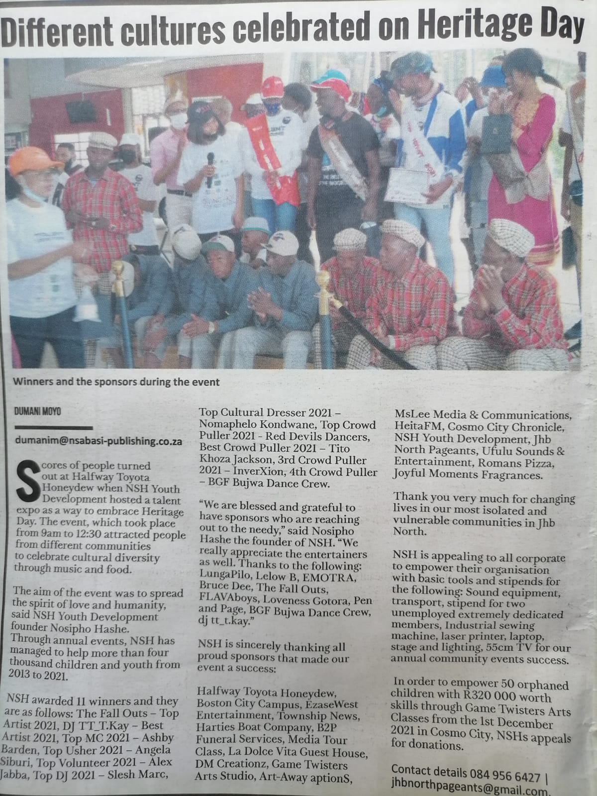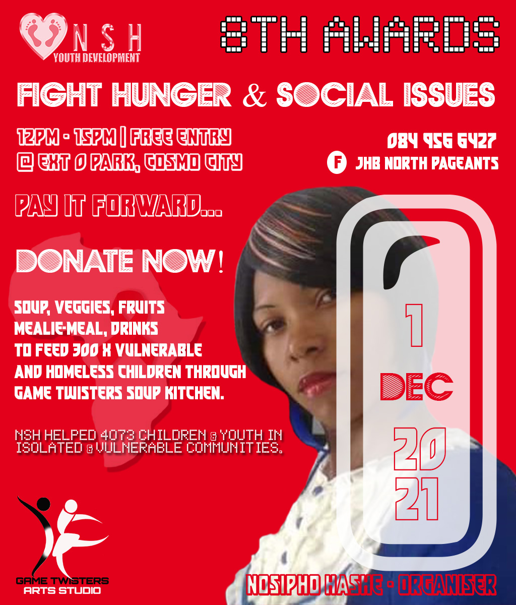 SPONSOR 10 X OLD OR NEW COMPUTERS TO EMPOWER 300 X ORPHANS WITH COMPUTER & VOCATIONAL SKILLS WORTH R3,600 000 FOR FREE. HELP NSH TO START SKILLS CLASSES IN JAN 2022 IN COSMO CITY. WE NEED: Transport x 1, Industrial Sewing Machine x 3, Laser Printer x 1, Website Design, Computers x 5, Stipend x 5, Video Camera x 2, Stage & Lighting x 1, Sound Equipment x 1, Embroidery Machine x 1, Pop Corn Machine x 1, Projector x 1, Ice Cream Machine x 1, Juice Machine x 1, Building Construction Tools, Beauty Products to empower 300 x Orphans with R3,600 000 worth Skills for FREE through Game Twisters Arts Studio. FIGHT HIGH RATE OF UNEMPLOYMENT, POVERTY, TEENAGE PREGNANCY, HUNGER, CORRUPTION, HIGH CRIME RATE, DEPRESSION, ANXIETY, SUICIDAL THOUGHTS, HARDSHIP CAUSED BY SHORTAGE OF SKILLS. NSH OFFERS PROFESSIONAL COUNSELLING SESSIONS FOR FREE! FIGHTING DEPRESSION. Join our Cause at 084 956 6427view more | jhbnorthpageants@gmail.comview email.... Donate Now to NSH Youth Development NPO 221-764, FNB Gold Business Account Number: 62862522466, Diepsloot Branch Code: 260510, Reference: Sponsor Name, PBO SARS Tax Number: 9903521178.