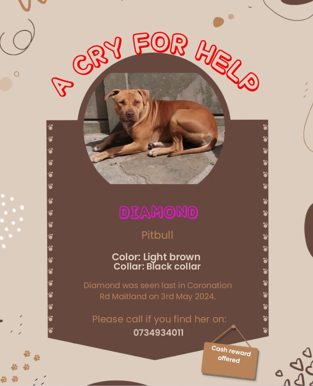 Lost dog. More details:Intention - Contact MeRegion - Western CapeCity and Suburb - Maitland
