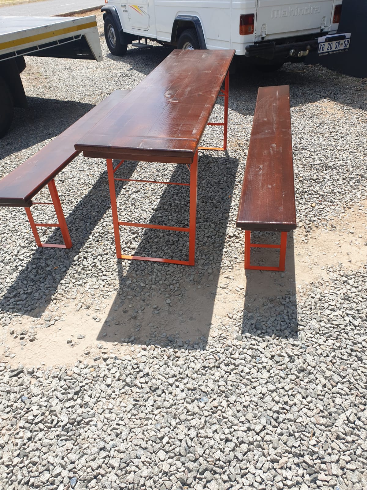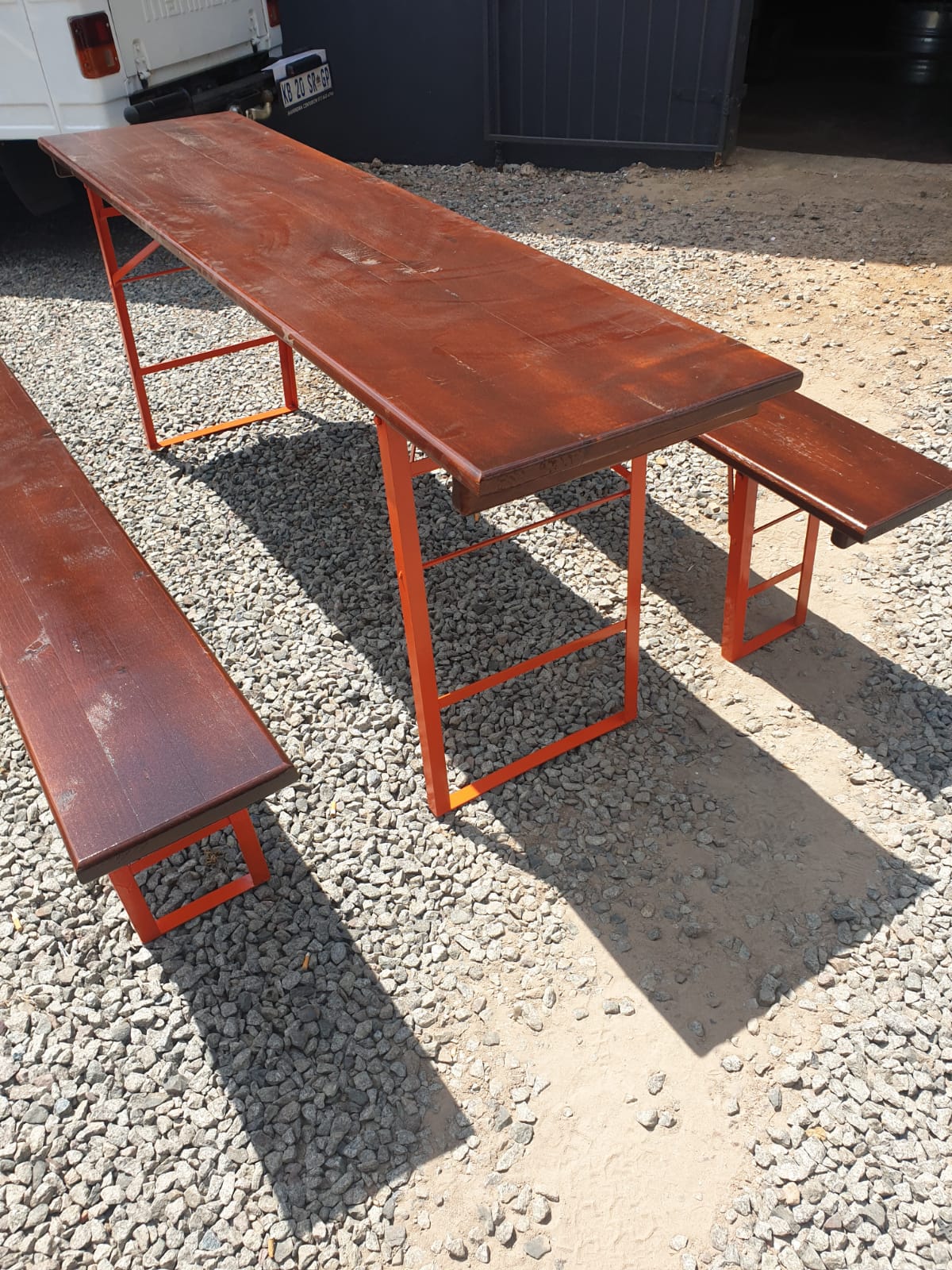 The hire includes 1 table and 2 benches as a set. Easy to set up and break down or simply call us and give us your location and we can make a delivery and collection quote for you – within a 60km radius from Ketelkraal Centurion.