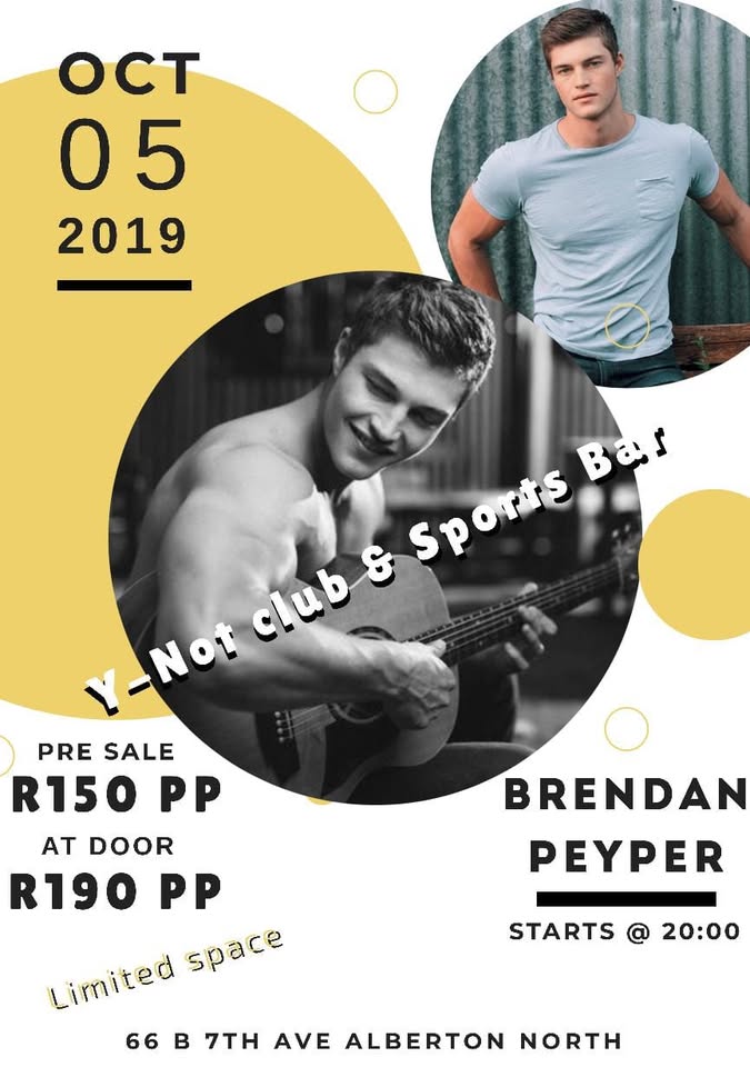 Brendan Peyper Show Tickets. More details:Intention - Contact MeRegion - GautengCity - JohannesburgSuburb - South Rand