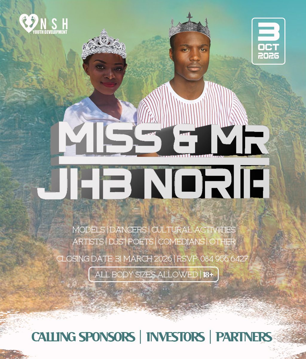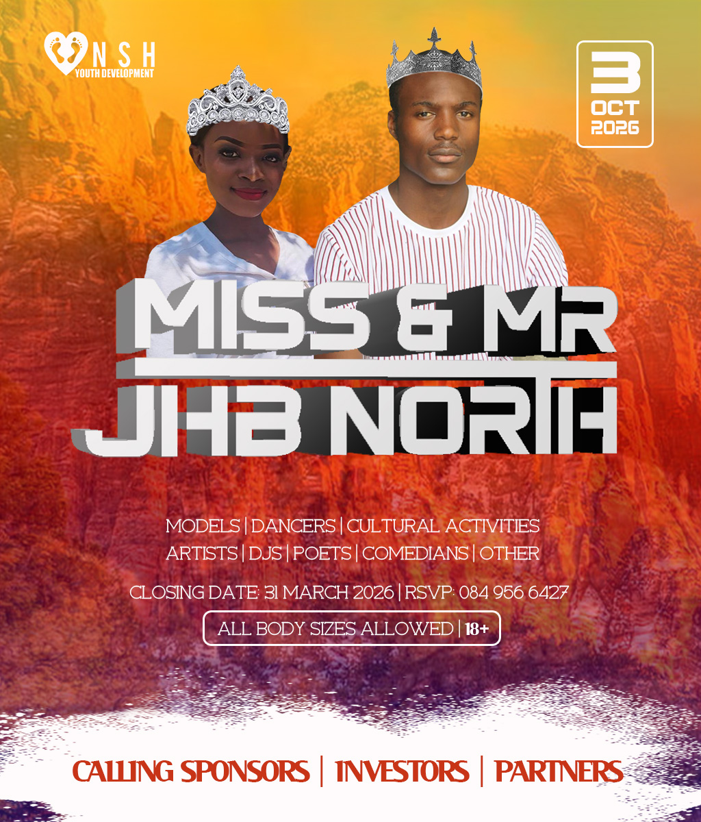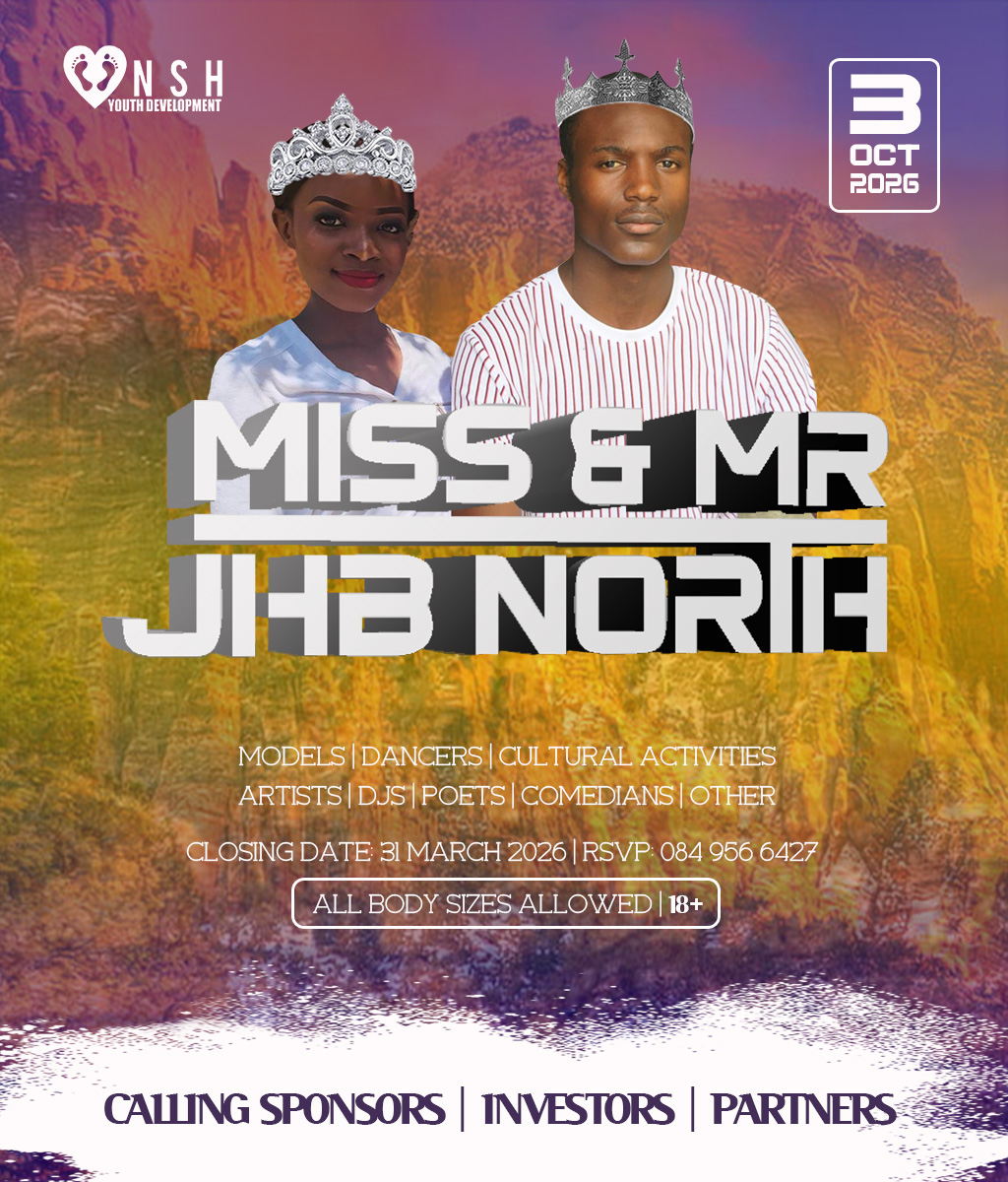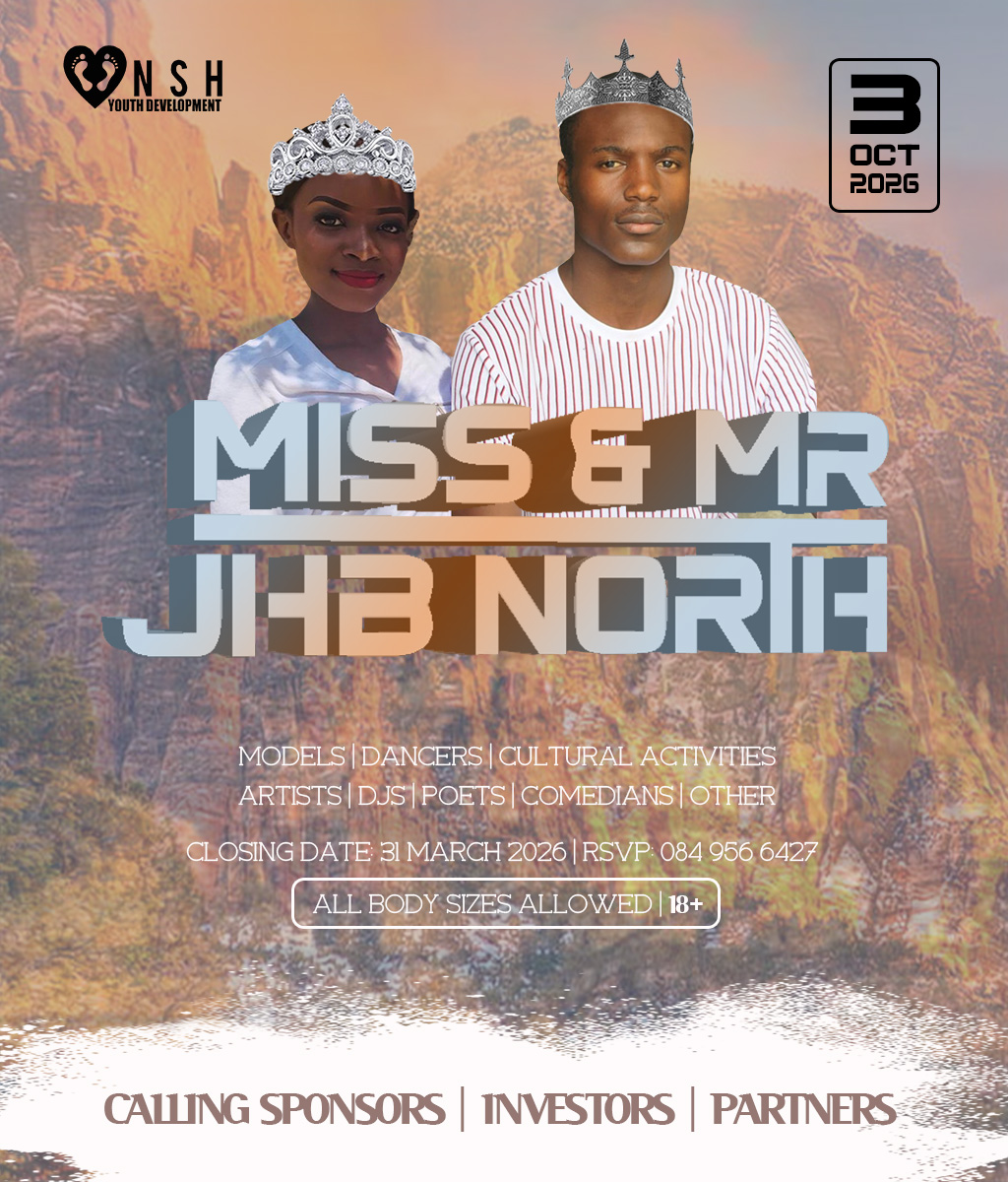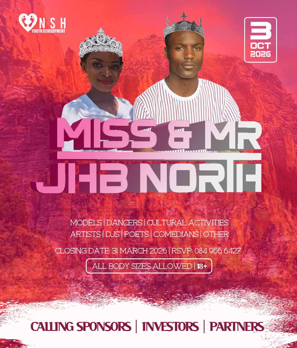 JHB North Pageants 2026 Crowns Await For You! Do you have what it takes to represent your HOOD? And BE Miss Cosmo City, Miss & Mr JHB North, Little Miss & Mr JHB North, Miss & Mr Teen JHB North, Mrs JHB North Heritage, Miss Bryanston, Miss Sunninghill, Miss Northriding, Miss HydePark, Miss Honeydew, Miss Rosebank, Miss ThaboMbeki, Miss Melville, Miss Ginger Park, Miss Riverside, Miss Randburg, Miss Cresta, Miss Itsoseng, Miss Northcliff, Miss Kyalami, Miss KyaSands, Miss StrijdomPark, Miss Lonehill, Miss Olivedale, Miss Wynberg, Miss Illovo, Miss Craighall Park, Miss Norwood, Miss Parktown North, Miss Parkwood, Miss Parkview, Miss Parkhurst, Miss Forest Town, Miss Boskruin 2026 presented by NSH Youth Development (crowning 20 x areas in JHB North to change lives in need)