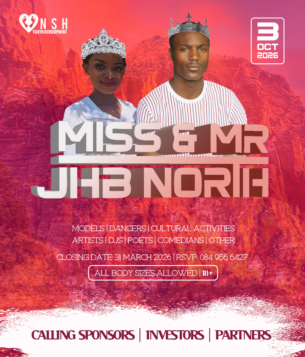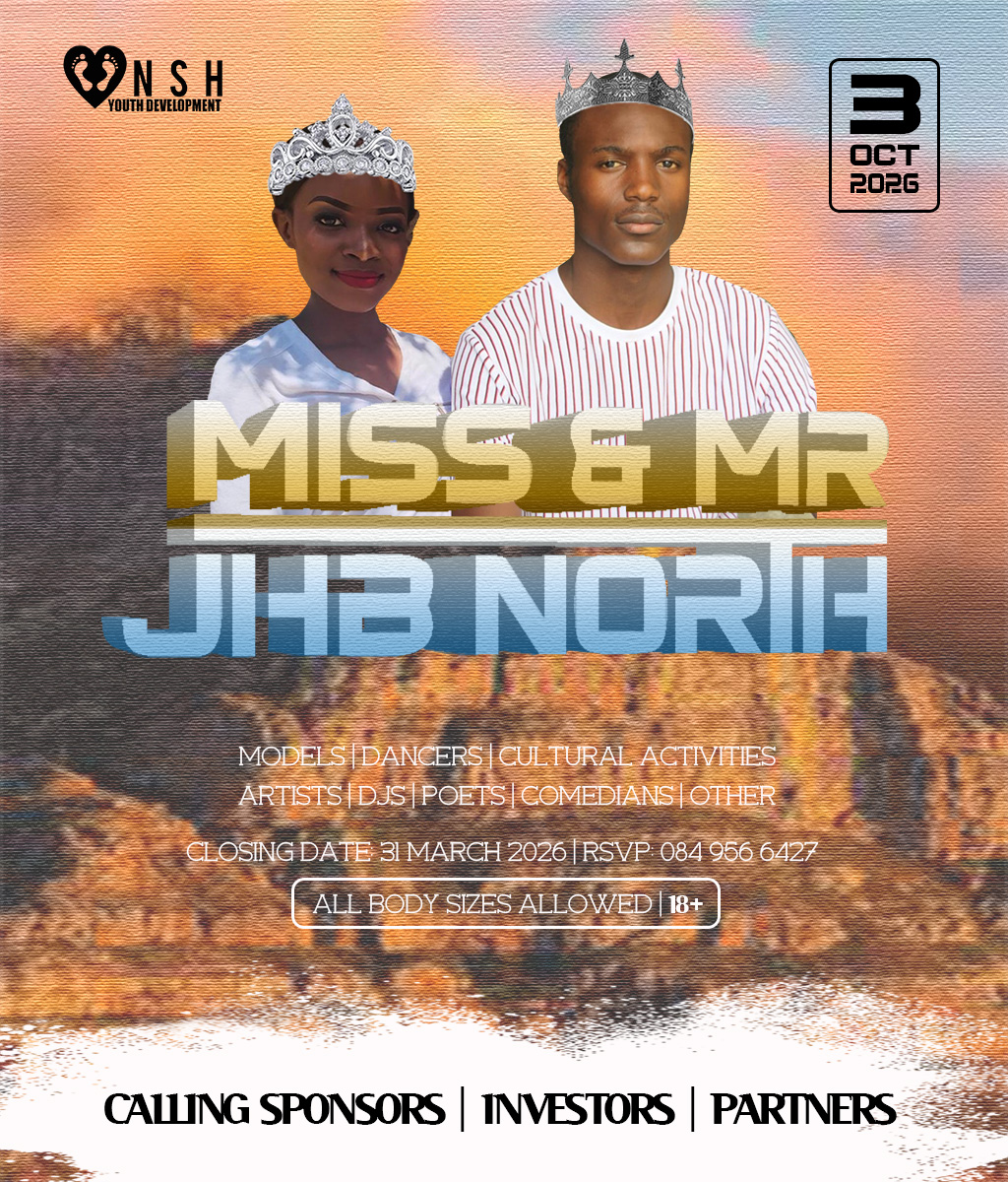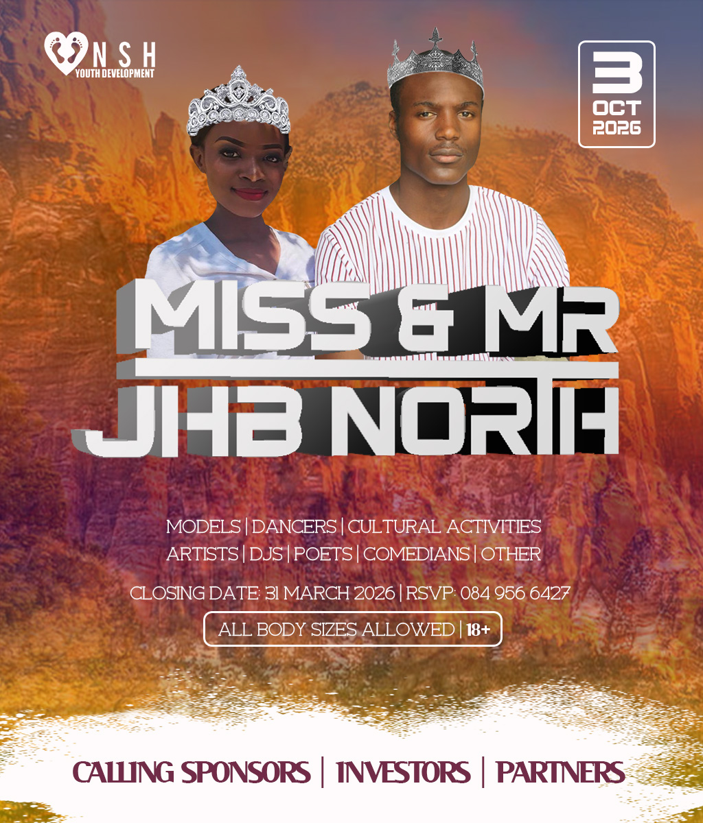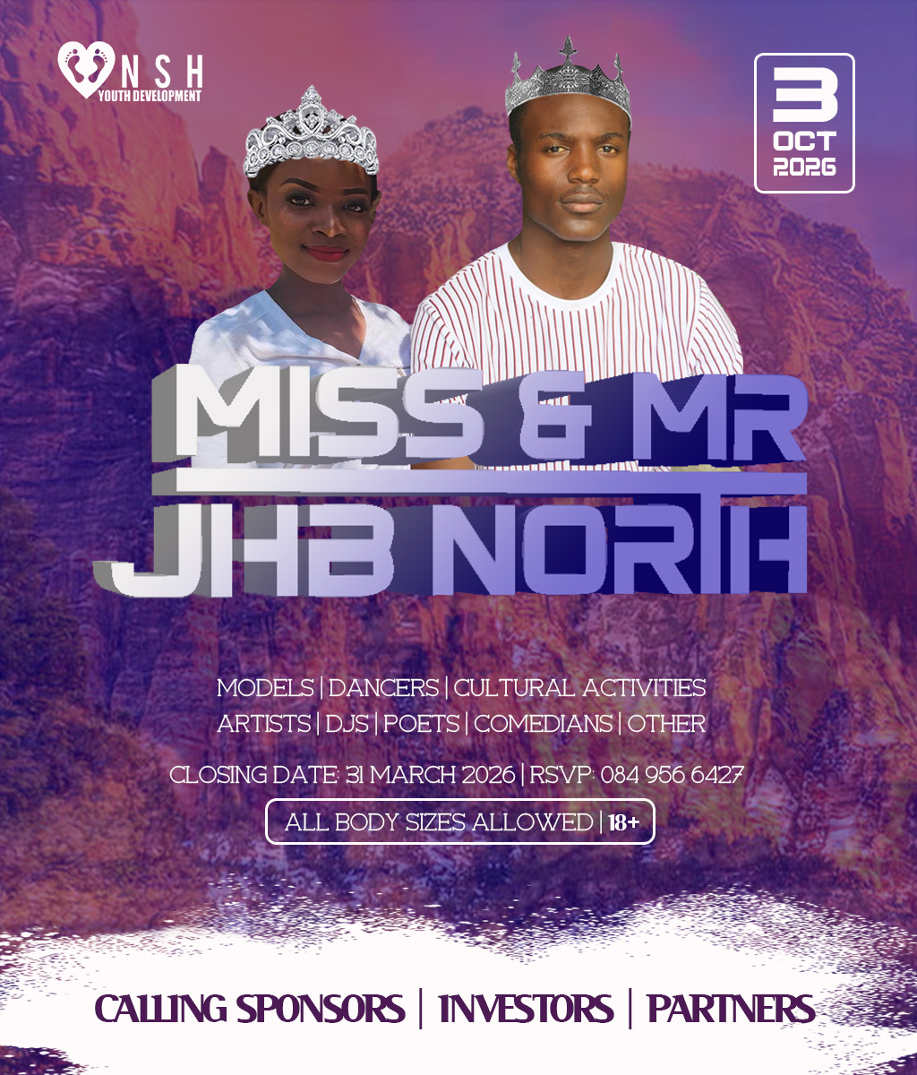 JHB North Pageants 2026 Crowns Await For You! Do you have what it takes to represent your HOOD? And BE Miss Cosmo City, Miss & Mr JHB North, Little Miss & Mr JHB North, Miss & Mr Teen JHB North, Mrs JHB North Heritage, Miss Bryanston, Miss Sunninghill, Miss Northriding, Miss HydePark, Miss Honeydew, Miss Rosebank, Miss ThaboMbeki, Miss Melville, Miss Ginger Park, Miss Riverside, Miss Randburg, Miss Cresta, Miss Itsoseng, Miss Northcliff, Miss Kyalami, Miss KyaSands, Miss StrijdomPark, Miss Lonehill, Miss Olivedale, Miss Wynberg, Miss Illovo, Miss Craighall Park, Miss Norwood, Miss Parktown North, Miss Parkwood, Miss Parkview, Miss Parkhurst, Miss Forest Town, Miss Boskruin 2026 presented by NSH Youth Development (crowning 20 x areas in JHB North to change lives in need)