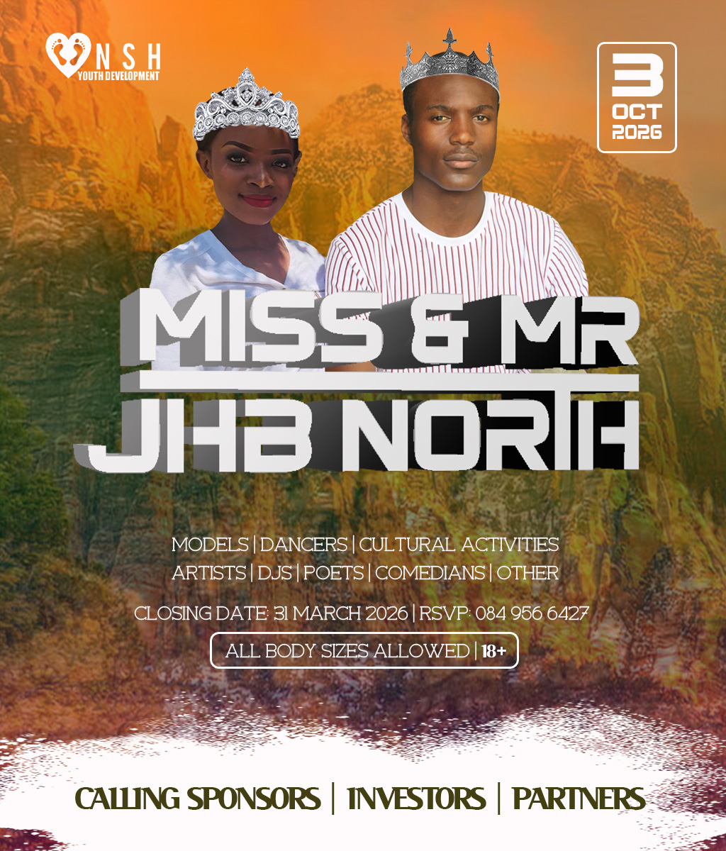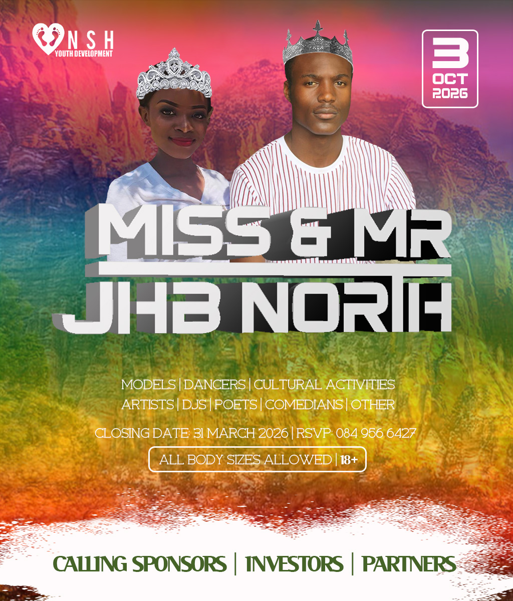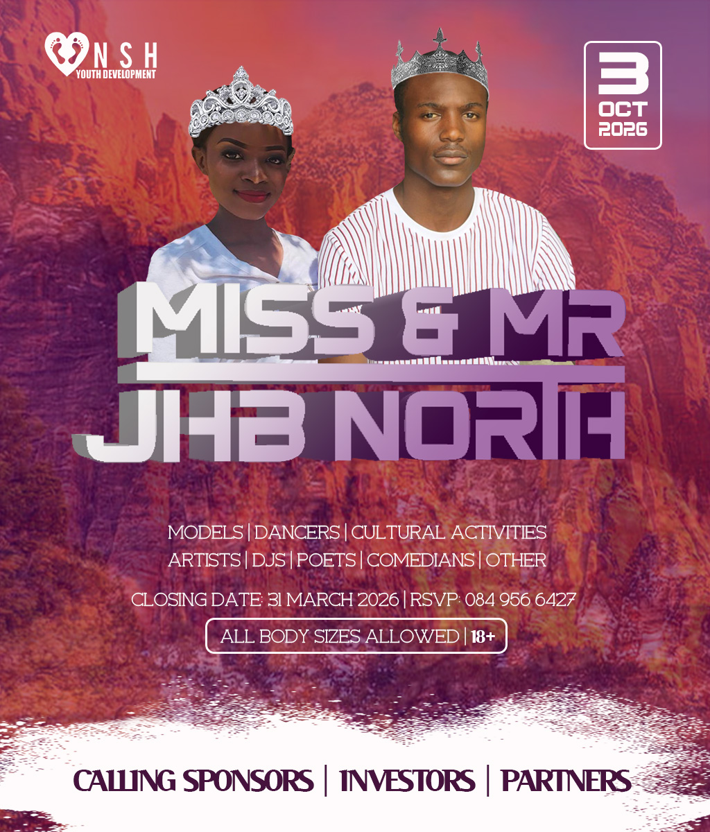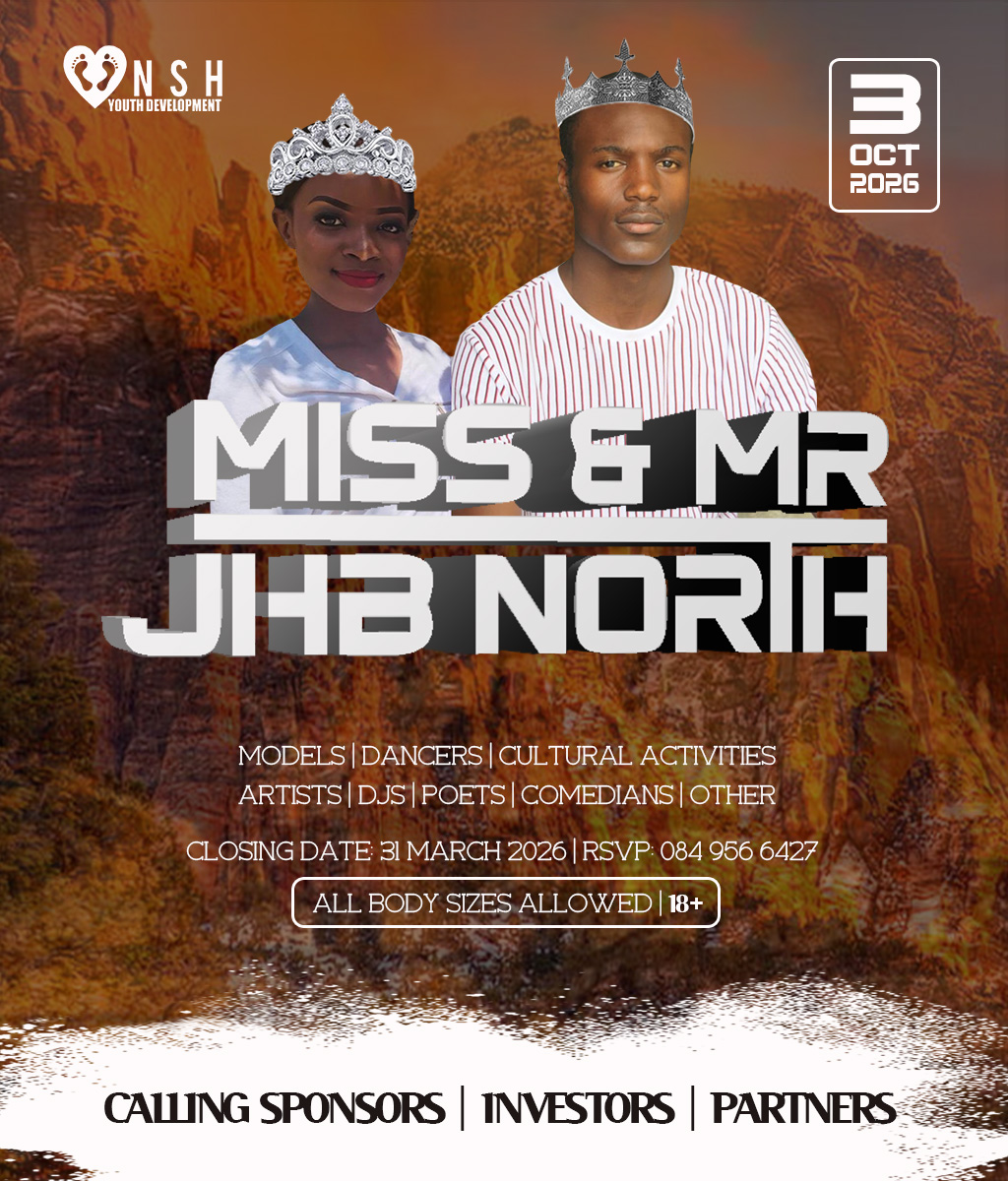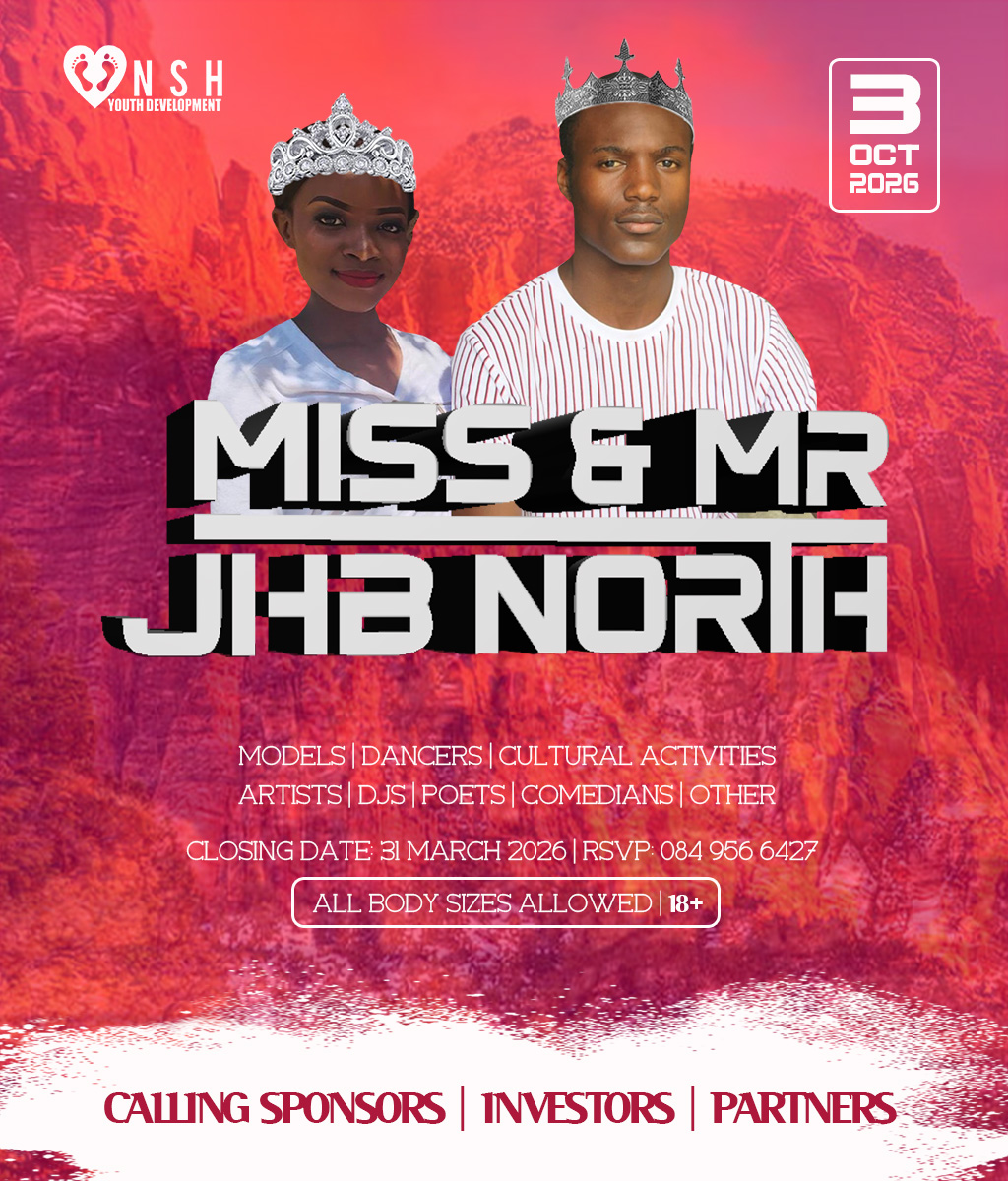 JHB North Pageants 2026 Crowns Await For You! Do you have what it takes to represent your HOOD? And BE Miss Cosmo City, Miss & Mr JHB North, Little Miss & Mr JHB North, Miss & Mr Teen JHB North, Mrs JHB North Heritage, Miss Bryanston, Miss Sunninghill, Miss Northriding, Miss HydePark, Miss Honeydew, Miss Rosebank, Miss ThaboMbeki, Miss Melville, Miss Ginger Park, Miss Riverside, Miss Randburg, Miss Cresta, Miss Itsoseng, Miss Northcliff, Miss Kyalami, Miss KyaSands, Miss StrijdomPark, Miss Lonehill, Miss Olivedale, Miss Wynberg, Miss Illovo, Miss Craighall Park, Miss Norwood, Miss Parktown North, Miss Parkwood, Miss Parkview, Miss Parkhurst, Miss Forest Town, Miss Boskruin 2026 presented by NSH Youth Development (crowning 20 x areas in JHB North to change lives in need)