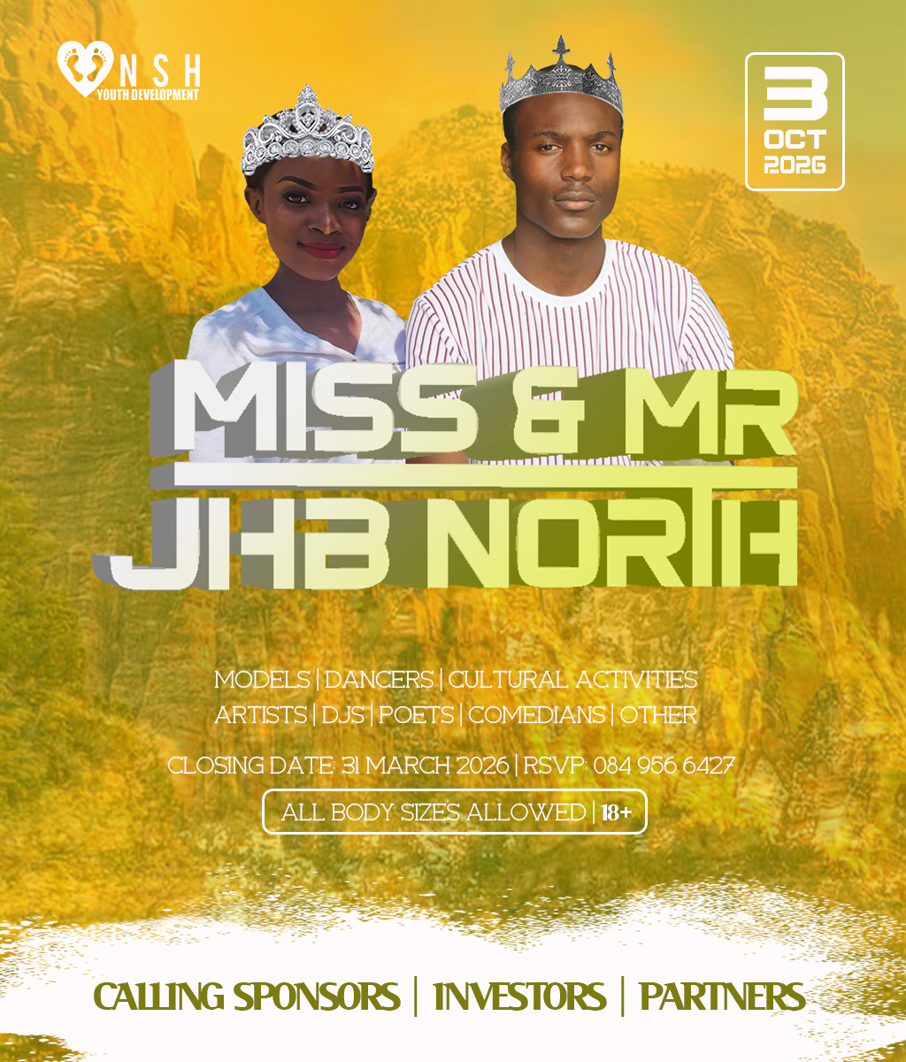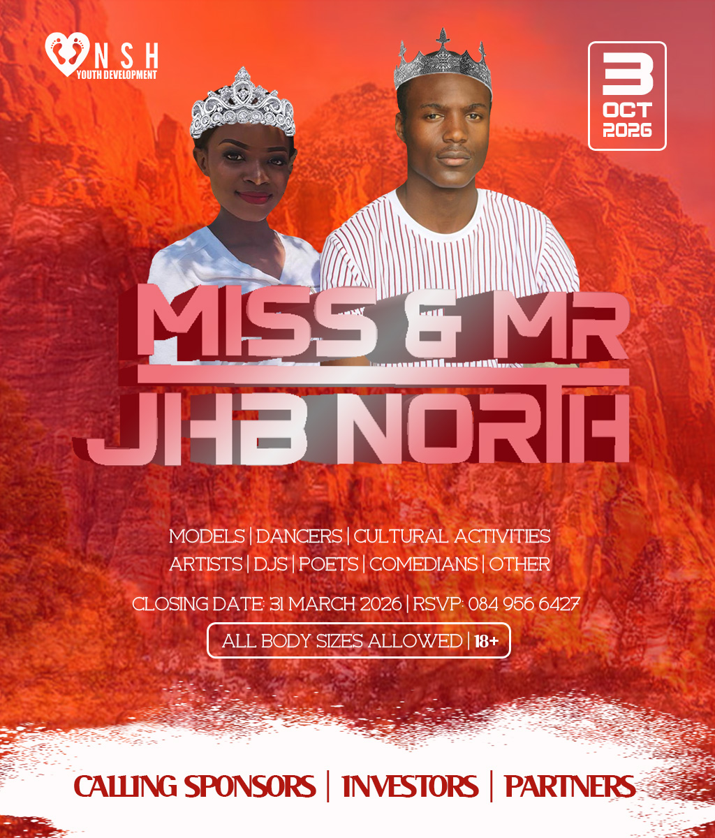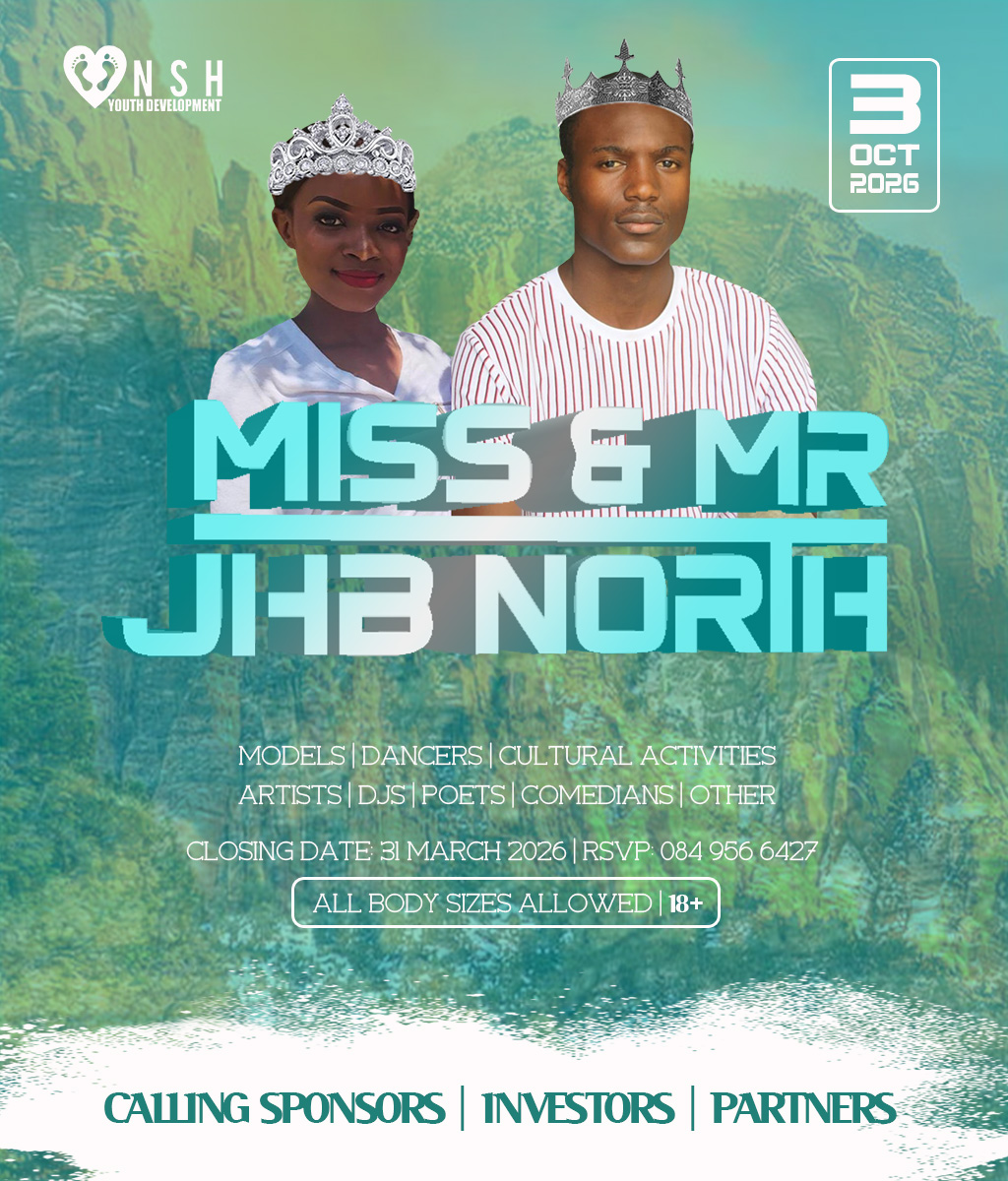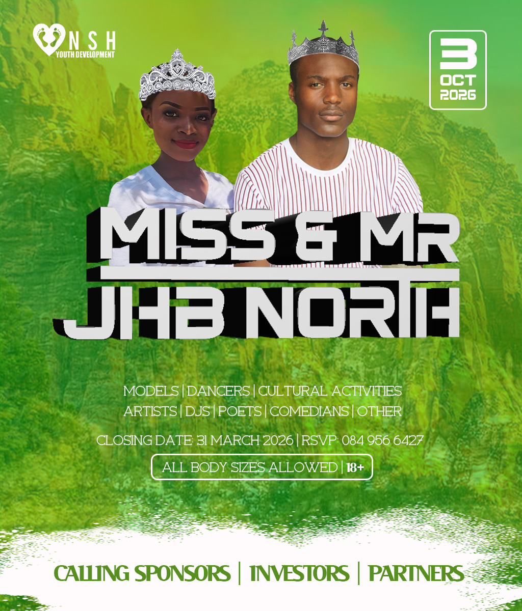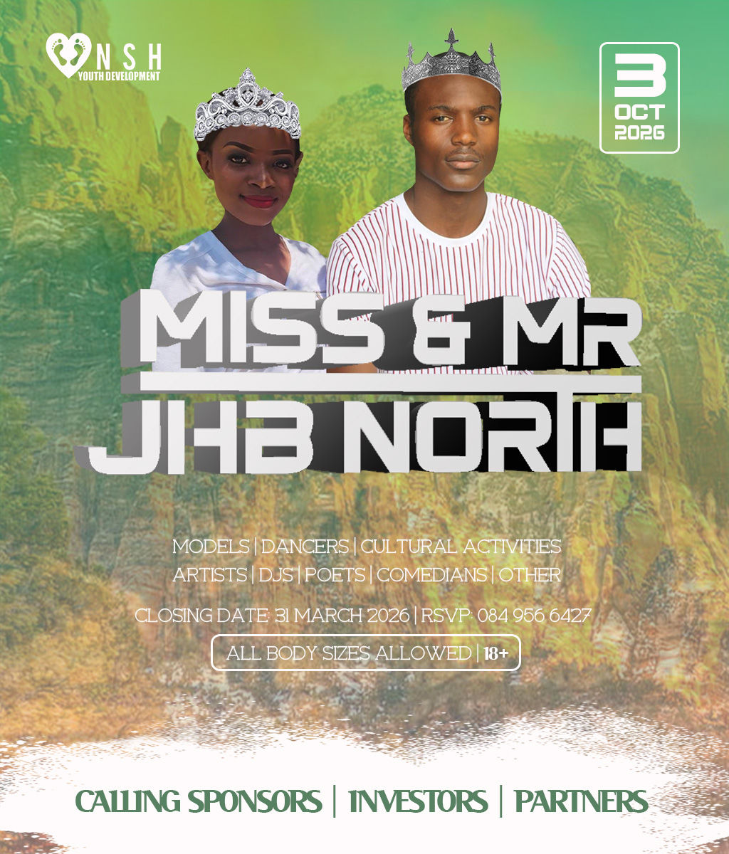 JHB North Pageants 2026 Crowns Await For You! Do you have what it takes to represent your HOOD? And BE Miss Cosmo City, Miss & Mr JHB North, Little Miss & Mr JHB North, Miss & Mr Teen JHB North, Mrs JHB North Heritage, Miss Bryanston, Miss Sunninghill, Miss Northriding, Miss HydePark, Miss Honeydew, Miss Rosebank, Miss ThaboMbeki, Miss Melville, Miss Ginger Park, Miss Riverside, Miss Randburg, Miss Cresta, Miss Itsoseng, Miss Northcliff, Miss Kyalami, Miss KyaSands, Miss StrijdomPark, Miss Lonehill, Miss Olivedale, Miss Wynberg, Miss Illovo, Miss Craighall Park, Miss Norwood, Miss Parktown North, Miss Parkwood, Miss Parkview, Miss Parkhurst, Miss Forest Town, Miss Boskruin 2026 presented by NSH Youth Development (crowning 20 x areas in JHB North to change lives in need)