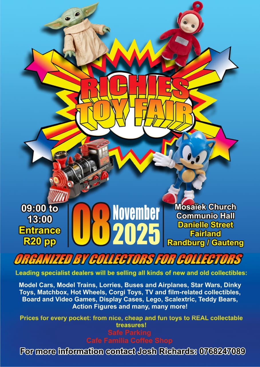 All kinds of collectable toys, all scales of model cars, board and video games, planes, trains Star Wars, Dinky Toys, Matchbox, Hot wheels, Corgi Toys, Scalextric, dolls, action figures, display cases, comics and much, much more.