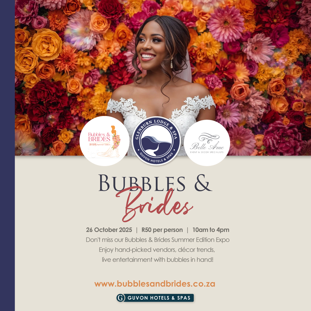 Join us on 26 October 2025 at Glenburn Lodge & Spa for a bridal expo celebrating love, creativity, and wedding dreams. Meet top vendors, explore décor trends, enjoy live entertainment, and sip on bubbly — the perfect day for future brides, grooms, and families!