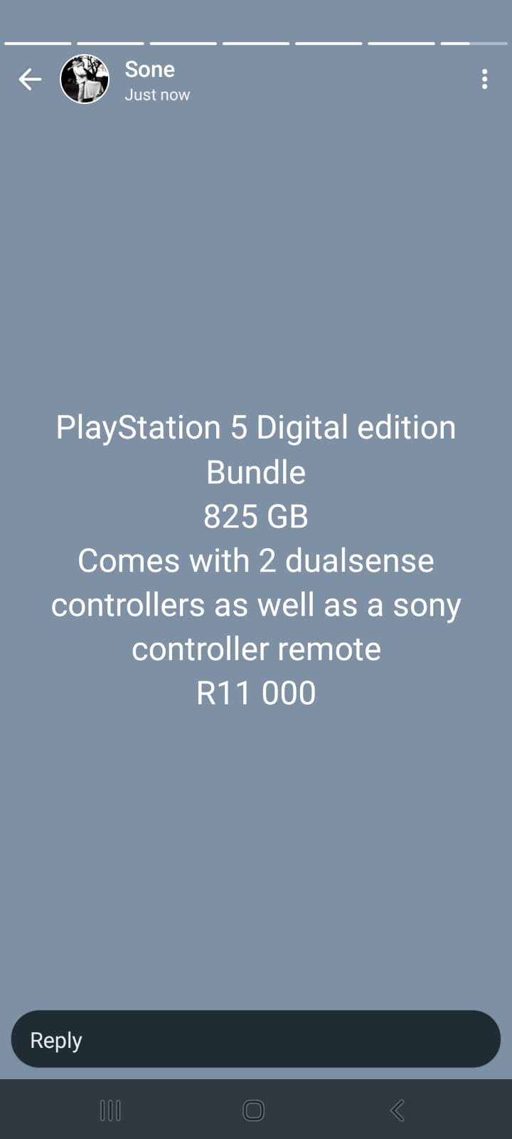Playstation 5. More details:Intention - For SalePrice - 11000.0Region - Free StateCity - Bloemfontein