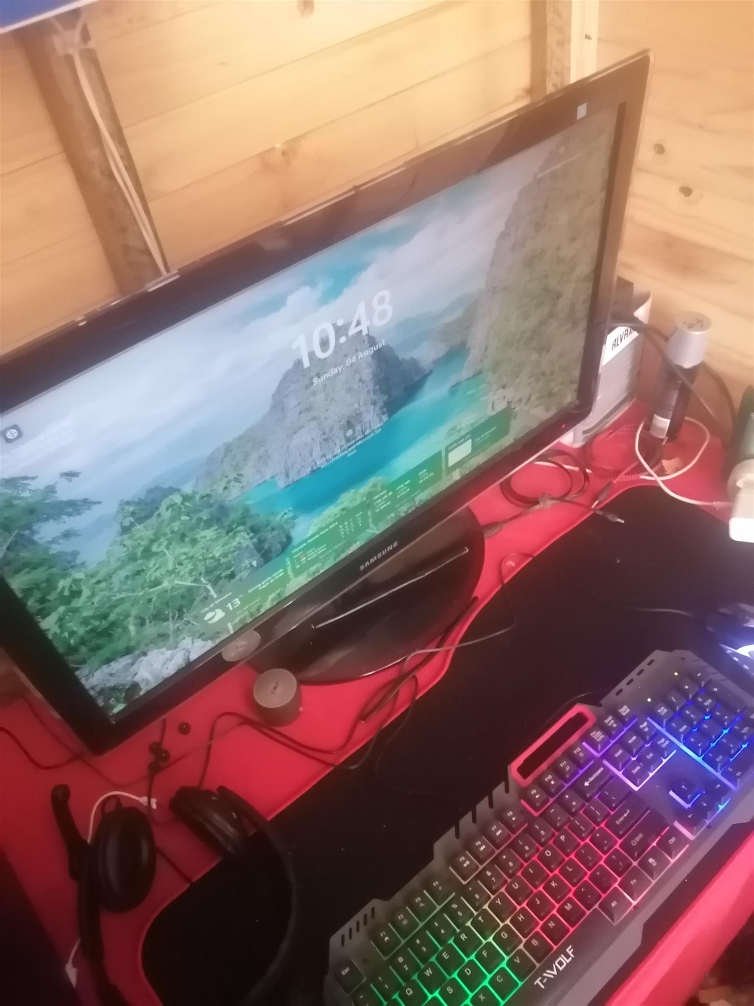 Ryzen 7 1700x cpu 32G gaming ram 600w gaming power supply Rx580 gpu 720G ssd water cooling cpu 3 rgb fans gaming case wifi on 27inch Samsung monitor gaming keyboard and mouse and mouse pad beast of gaming pc wm3 runs at 210fps whatapp for more information 0696297162view more for whatapp