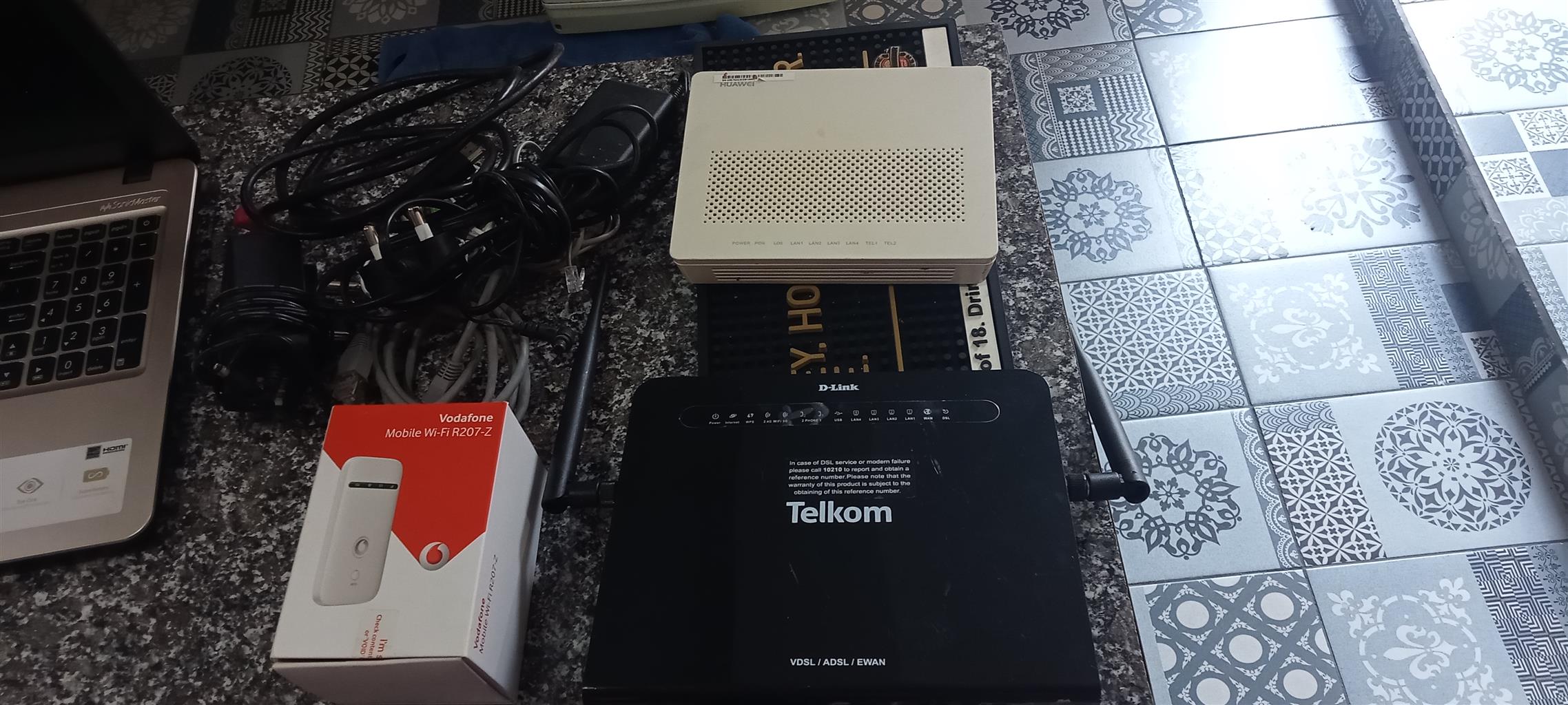 Asus laptop about 2 years old still in good condition, headset with microphone, laptop camera, pocket WiFi router, Telkom WiFi router and other cables with router