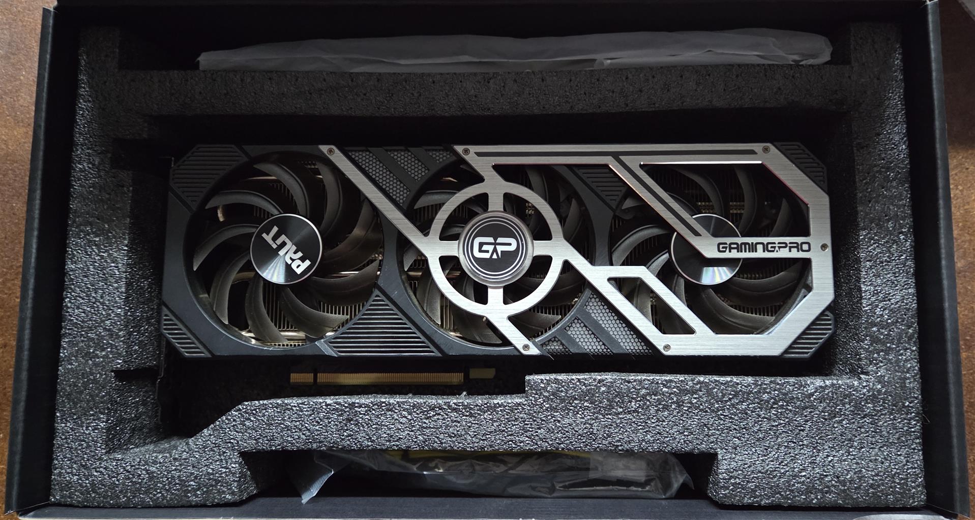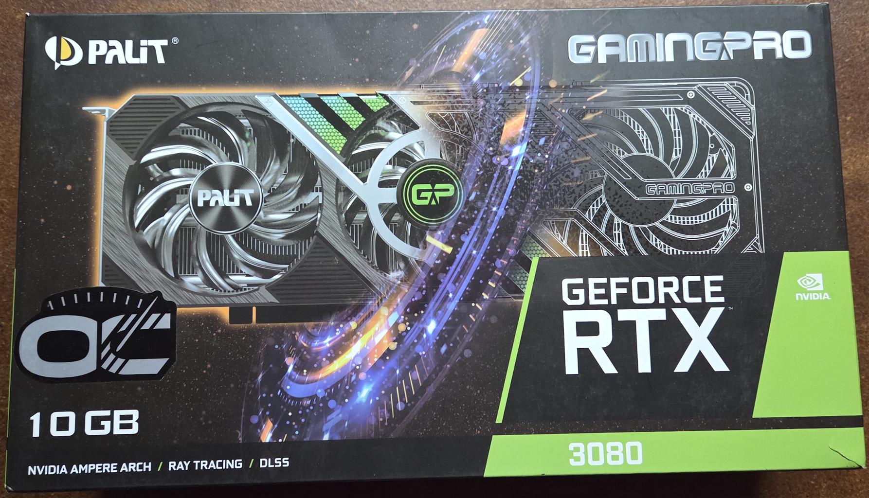 Palit GeForce RTX 3080 GamingPro OC in original packaging with accesories Sag bracket, Manual and cables.