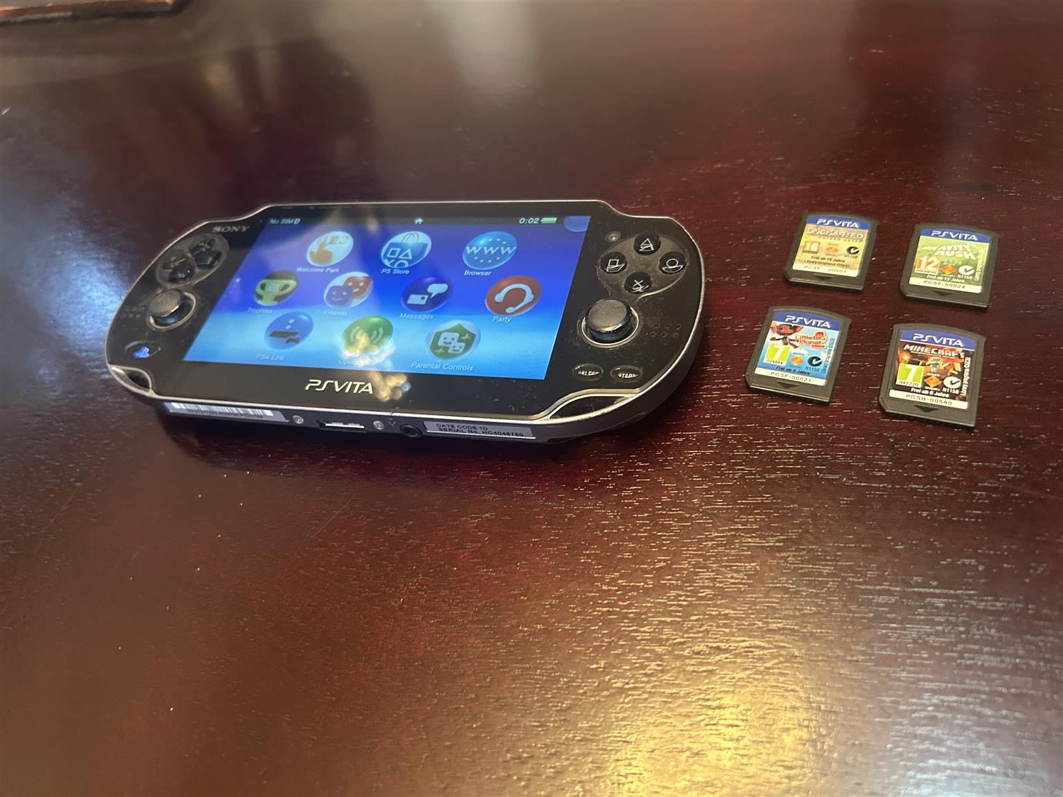 Hi I’m selling my Psvita. It’s in good condition, I took good care of it. It comes with: 16gb memory card, charger, 4 games (Gravity Rush, Uncharted, Little Big Planet and Minecraft) and a bag.