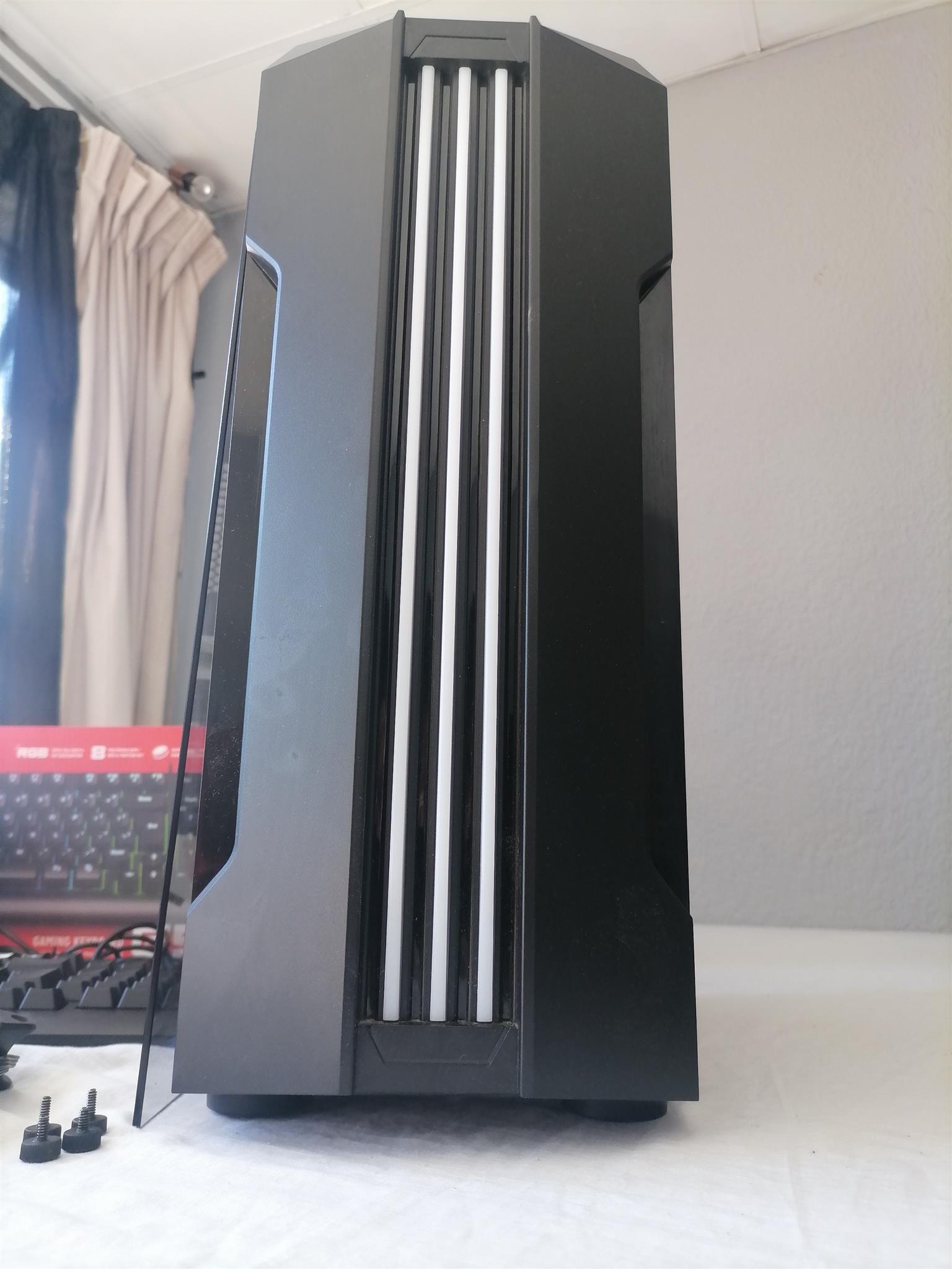 Used RGB Mid Tower ATX Gaming case still in excellent condition. With glass cover and removable dust filter.
