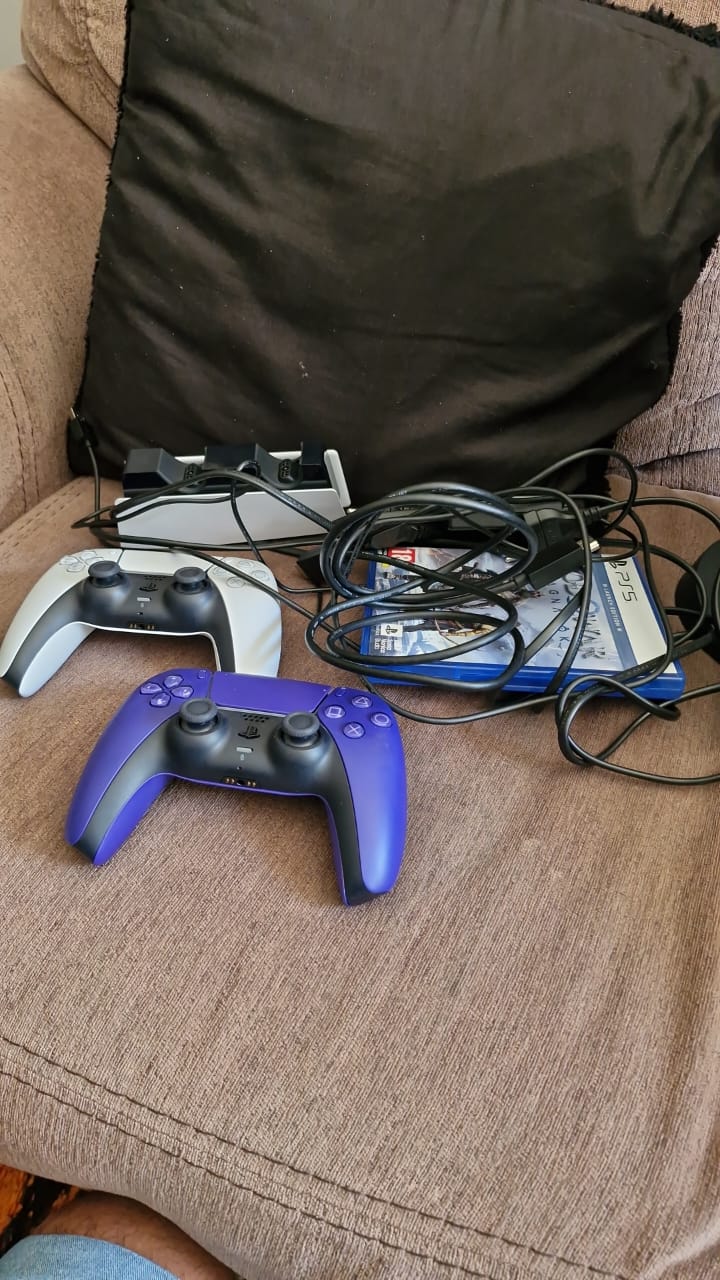 Comes with 2 controllers, 2 type c cables, 1 dualshock charger and 1 God of War game
