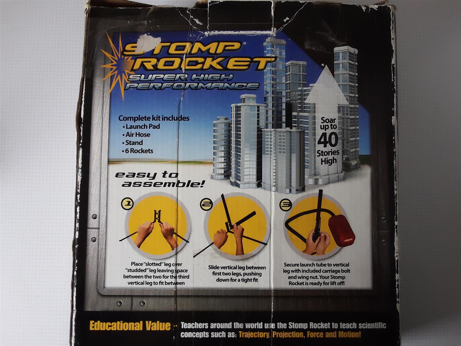 Stomp Rocket Original Game: Super High Performance 6-Rocket Kit. Air Powered Rockets. No Battery & No Fuel Required. Ready to fly in Seconds. Up to 400 feet. R499.I am in Orange Grove.
