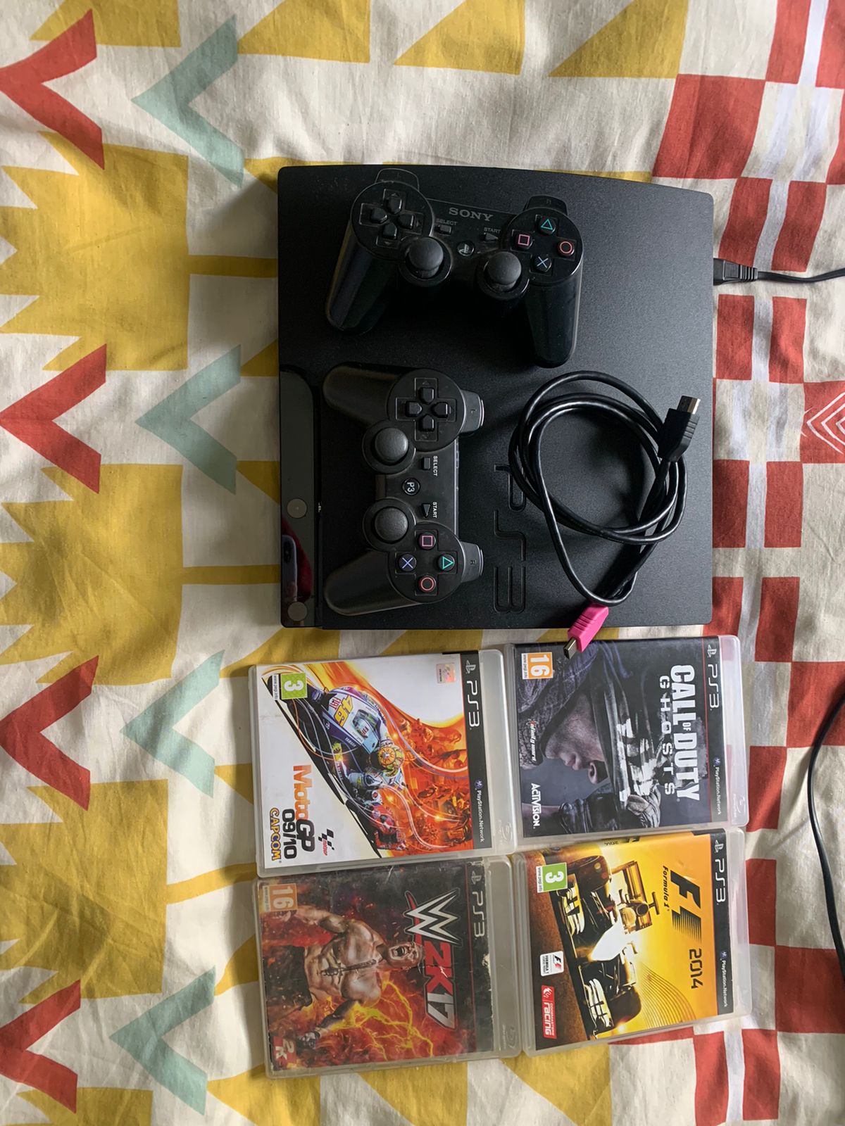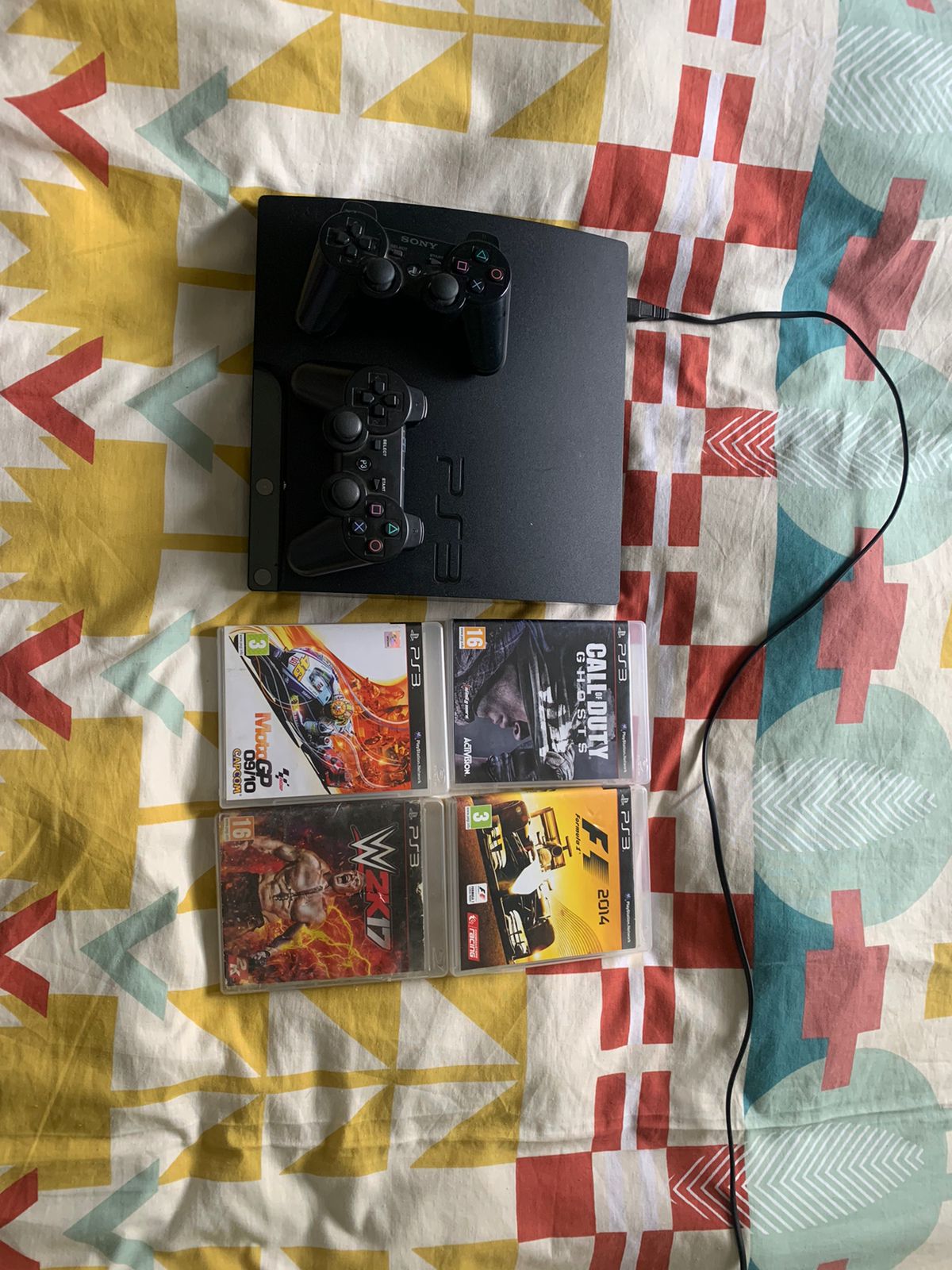 PS 3 Console, 2 controllers plus 4 games for sale.