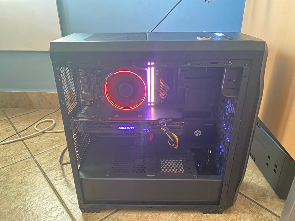 Cpu ~ amd ryzen 5 1600x core Gpu ~ nividia geforce gtx 1060 3gbRam ~ 16 gb DDR4 3600MHZ SSD 250 GBHD 1TBWINDOWS 11 4 grey fans