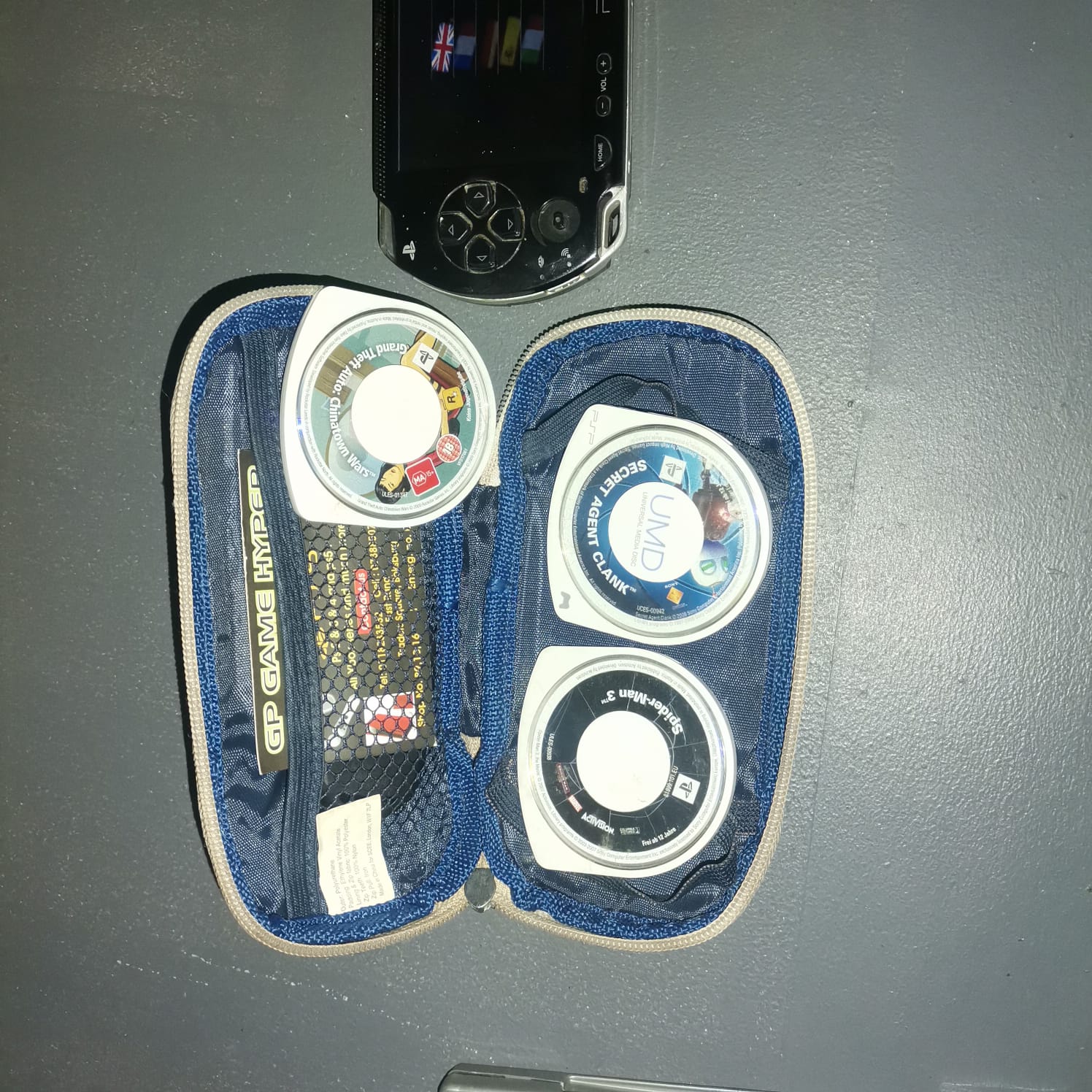 PSP with charger and 5 games. Grand Turismo, World Rally championship, Secret Agent Clank, Grand Theft Auto and Spiderman 3.