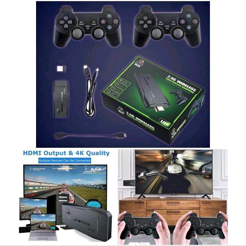*G 4145. Double Wireless Controller Game Stick* Best of the 80's and 90's. HD 4K M8 Game stick wireless video game console. 32GB Retro TV games with dual 2.4G gamepads. Preloaded 3500+ classic games. Easy plug and play setup. All accessories include WhatsApp R550 excluding courier All brand new stock