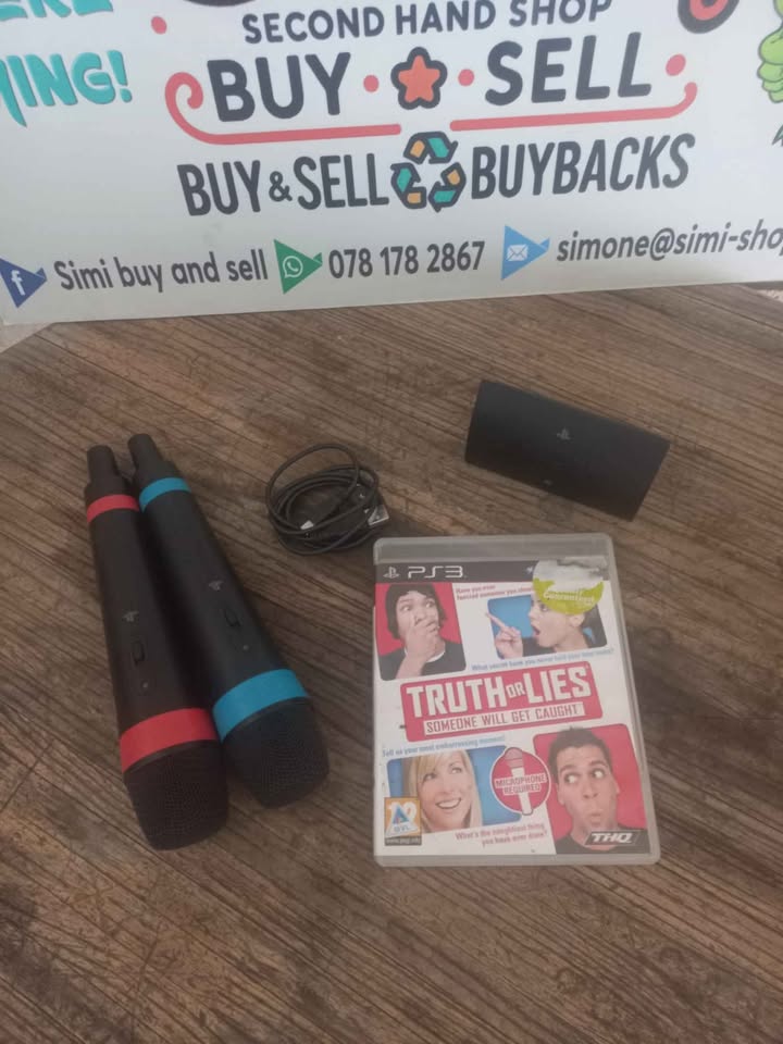 Get ready for hours of fun with this PS3 “Truth or Lies” party game — perfect for family nights and get-togethers! Comes with two original Sony USB microphones and receiver. Everything tested and working 100%. ✅ PS3 “Truth or Lies” game ✅ 2x original Sony USB microphones (red & blue) ✅ USB receiver included ✅ Fully tested & working perfectly ✅ Great for karaoke or quiz games!