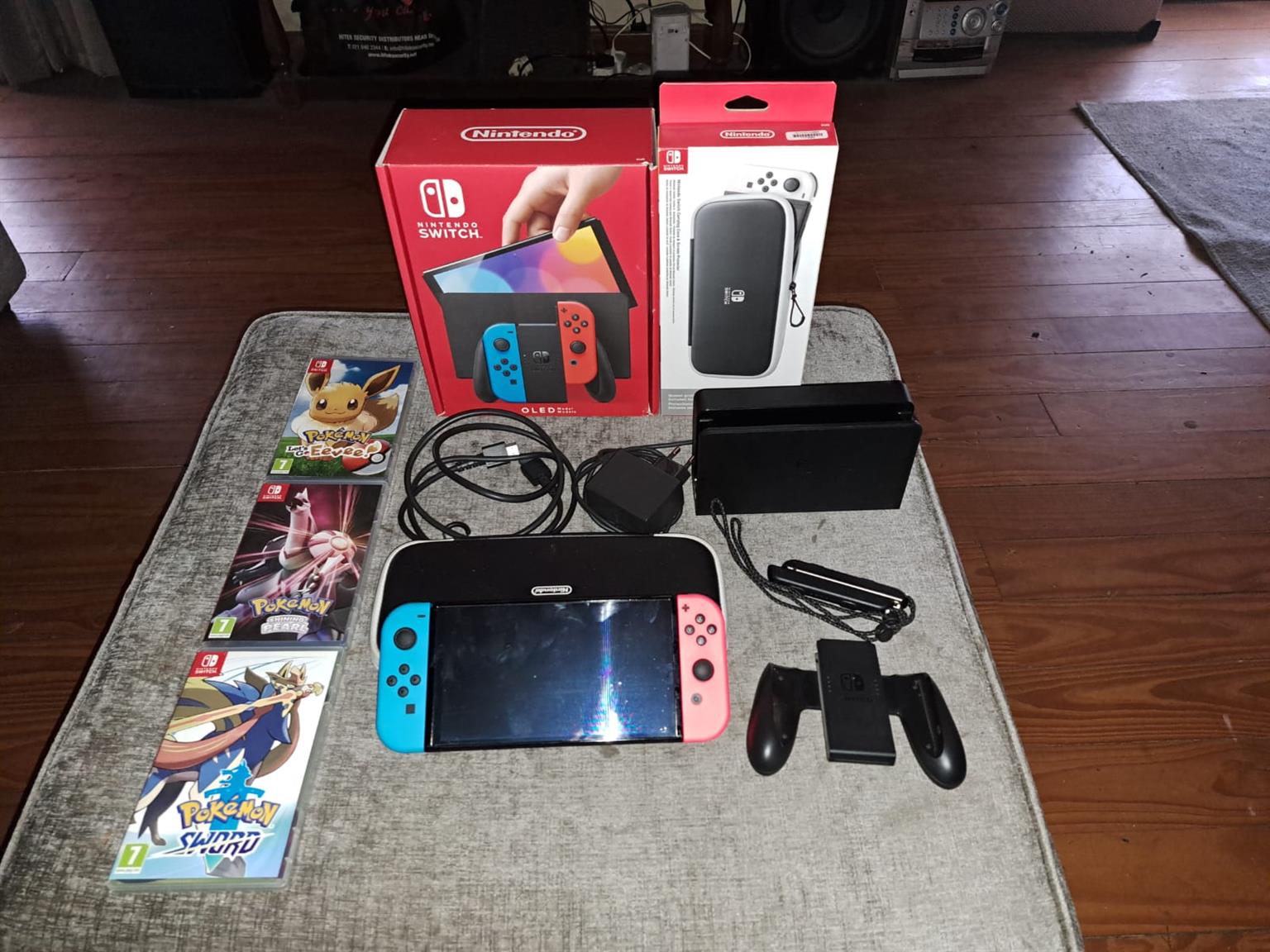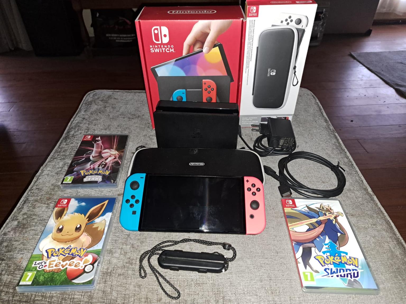 Consol comes with original box that includes the following: Nintendo Switch OLED with screen protector on. Blue and red Joy-con. Joy-con grip. Joy-con straps. Dock. AC Adapter. HDMI Cable. Nintendo carry case. 3 Games included: Pokémon Lets Go Eevee. Pokémon Shining Pearl. Pokémon Sword. Please only serious buyers. No EFT and No shipping. Cash in hand when collecting. PRICE IS NON-NEGOTIBLE