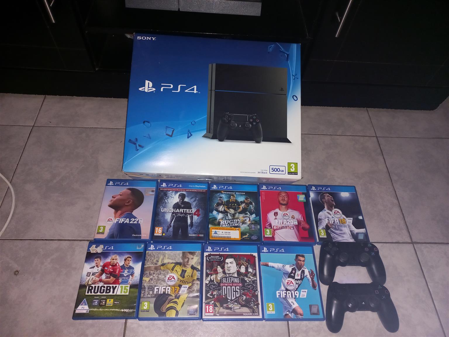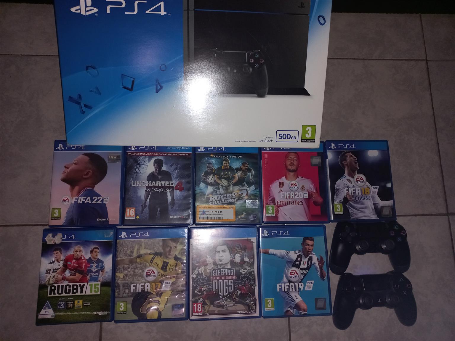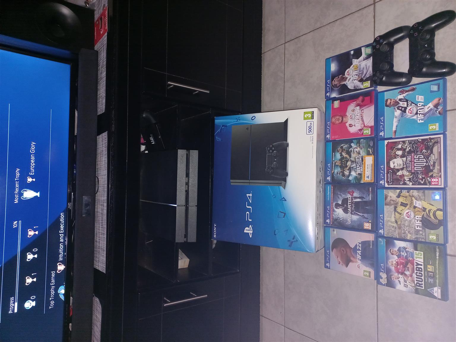 Complete PS4 with Box, 2 controllers and 9 games. Everything is in excellent condition no scratches no blemishes work like a dream