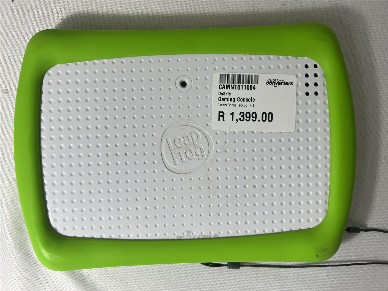 Leapfrog Epic Gaming Console for sale R650.00. In a good and working condition backed by a six month guarantee. White and green in colour. Reference : CAMNT011084