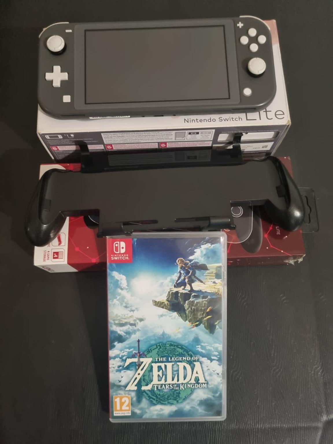 Switch lite in excellent condition, no stick drift, comes with zelda tears of the kingdom, mythics comfort grip, 256gb adata micro sd card and original box with original ac adapter.