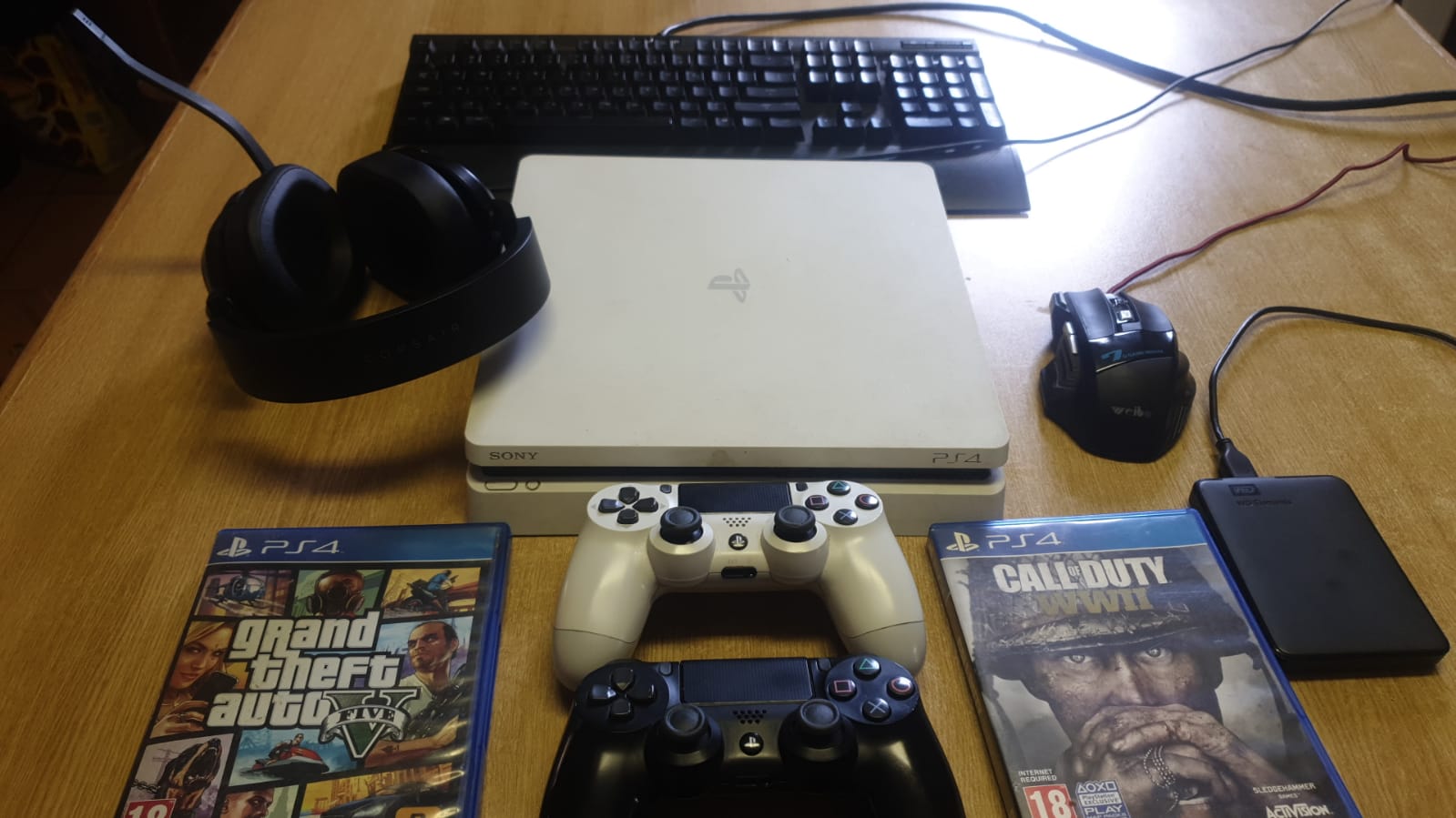 Ps4 slim , 2 tb external hardrive , corsair headset and keyboardGames and controllers