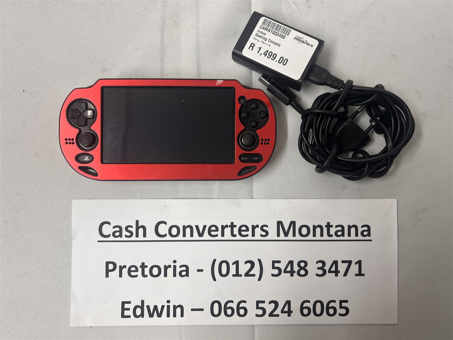 Sony PS Vita for sale R1499.00. In a good and working condition backed by six month guarantee. Black and red in colour. Reference : CAMNT033400