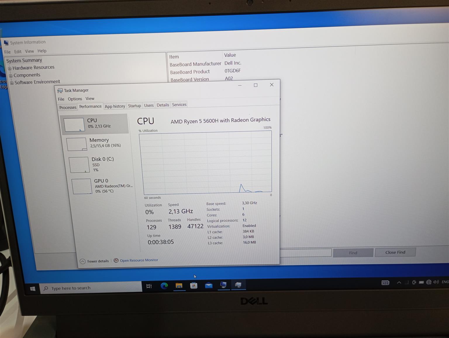 Dell G15 Ryzen™ Edition Gaming Laptop, AMD Ryzen 5,Radeon Graphics, CPU @3.30ghz, 32GB RAM 500gb SSD
