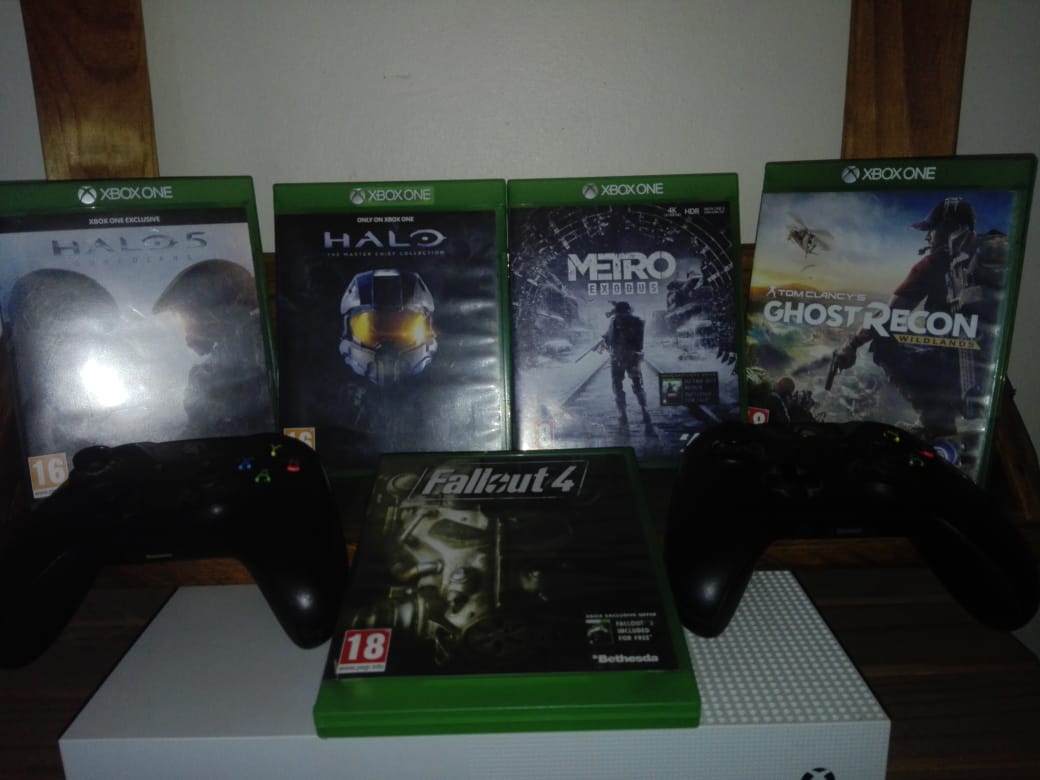 Used in good condition, comes with 2 x controllers and 5 games