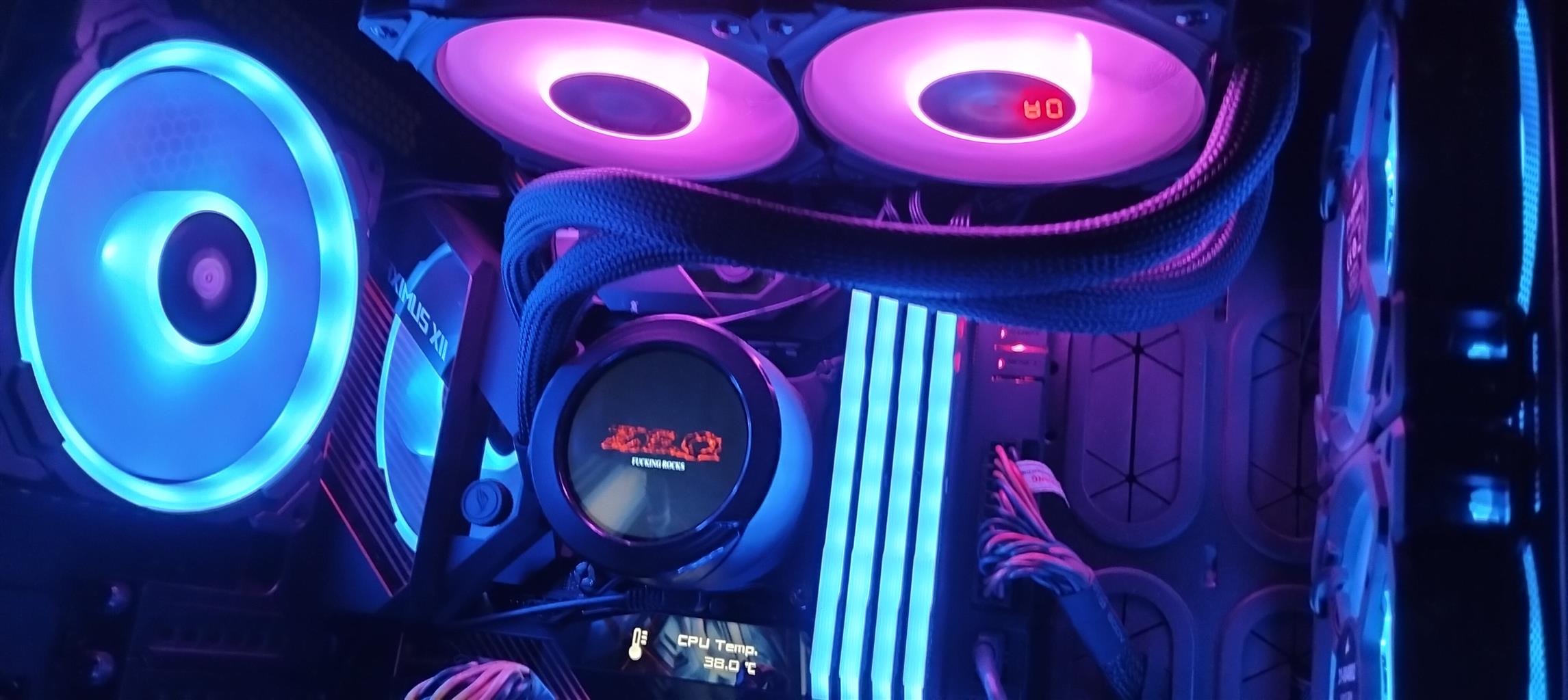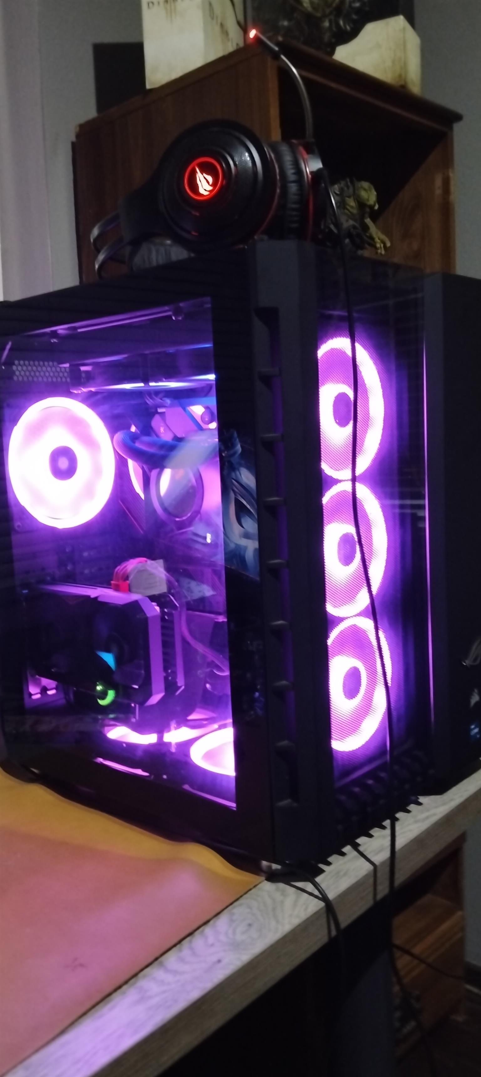 11th gen i5 11600 4.5ghz, 32gb 3200mhz rgb corsair ram, Asus Rog Maximus XII motherboard, Water cooling system with LCD display, Nvidia Geforce RTX 3050 128bit 8gb Gddr6, 2tb m2 drive 250gb SSD, 128gb SSD, 5x 120mm rgb fans and 2x 140mm rgb fans, corsair glass case and 750 watt psu. Comes with WIN 11, Screen, headset, speakers, keayboard and mouse. Got all original boxes.