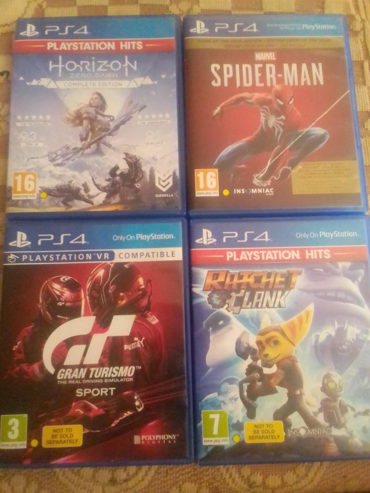 Horizon zero dawn , Marvel Spider man ,Ratchet & Clank ,Grand Turismo sport excellent condition R1000 for all 4 games