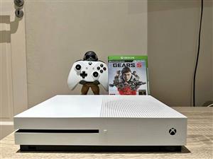 A xbox series s still in box with 3 controllers. 1 of the controllers is a carbon black edition.